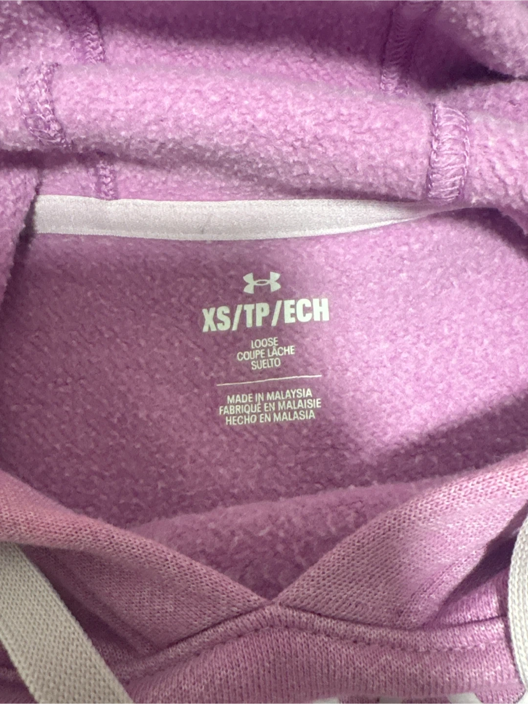 Selling a comfy Under Armour Performance hoodie in size XS. It's a lovely light purple colour and in great condition! The hoodie has a loose fit, perfect for layering or just lounging around. Pick up cash only