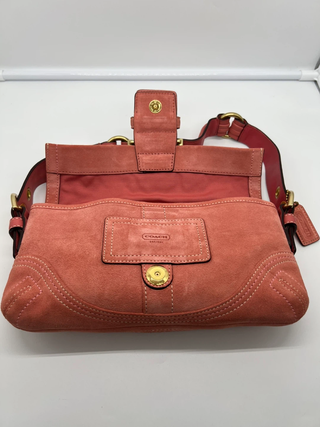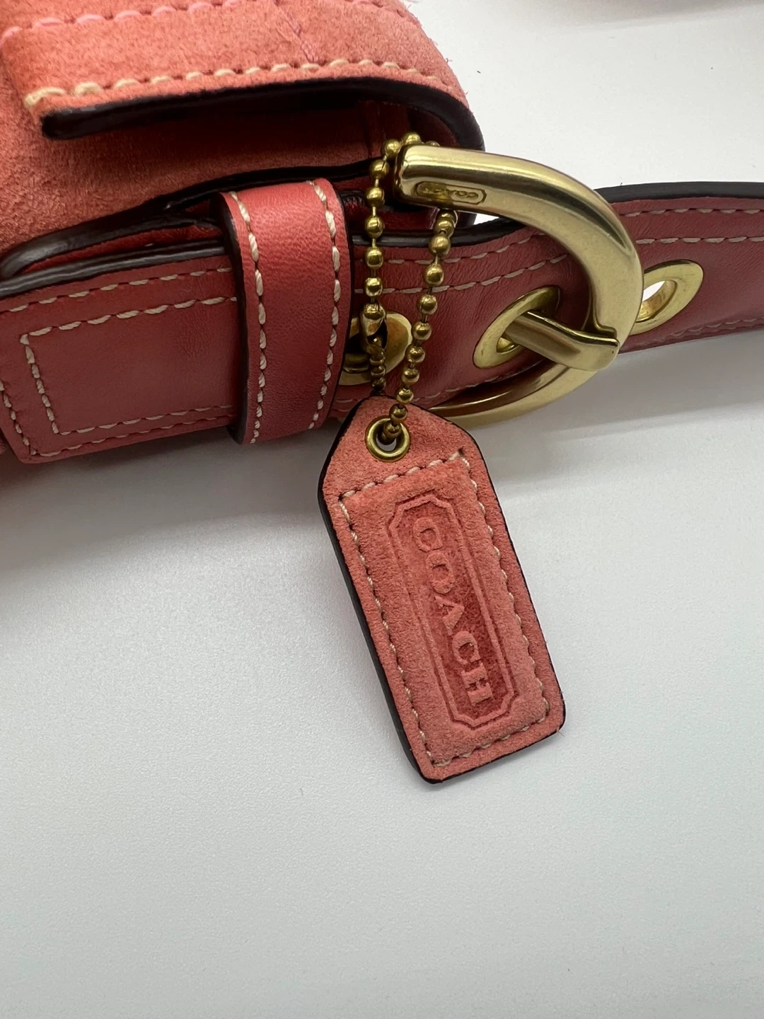 COACH VINTAGE Y2K Soho Demi Flap Salmon Suede Baguette