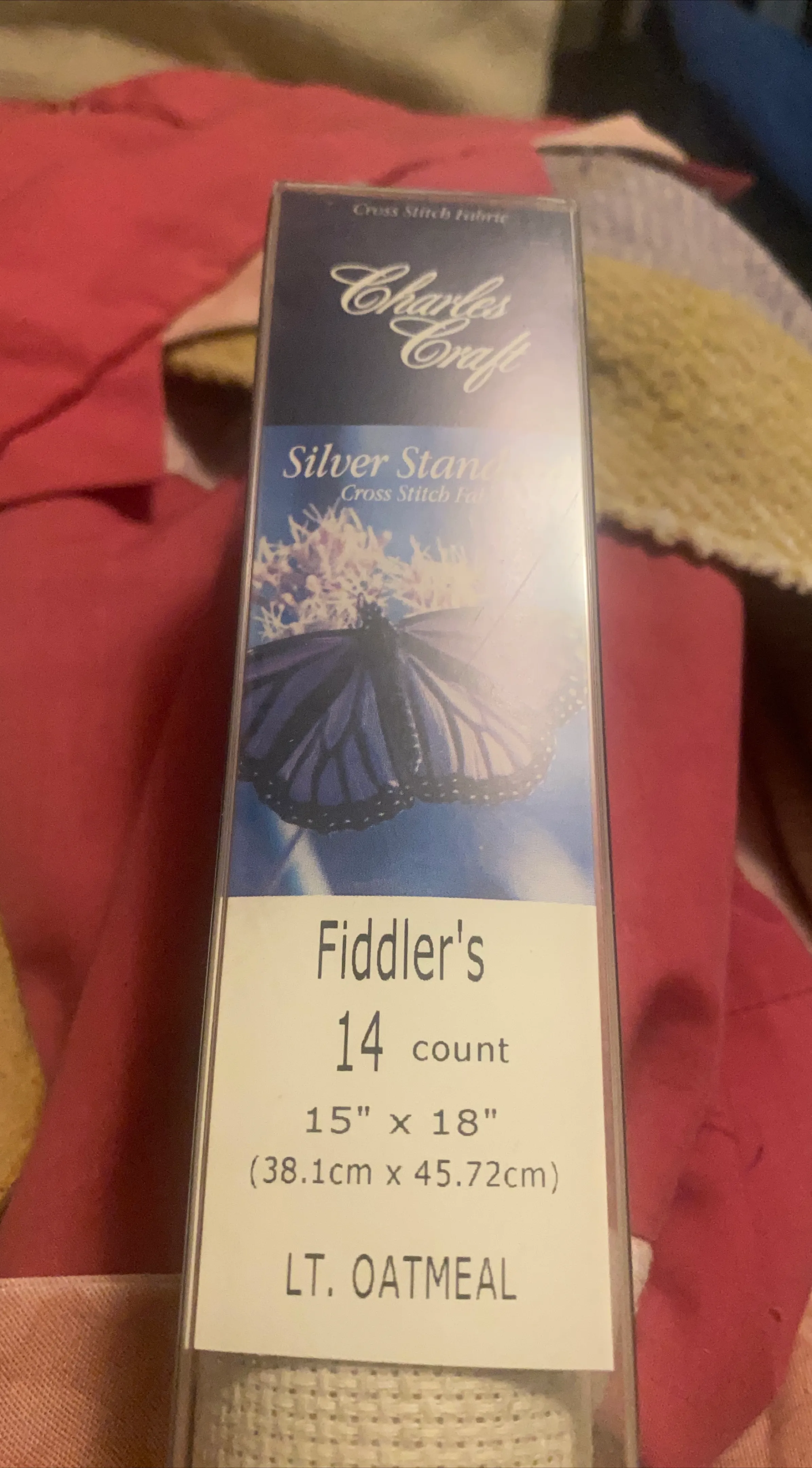 Selling a Charles Craft cross stitch fabric in the Fiddler's style! It's a 14 count fabric, sized at 15" x 18" (38.1cm x 45.72cm). The colour is LT. Oatmeal