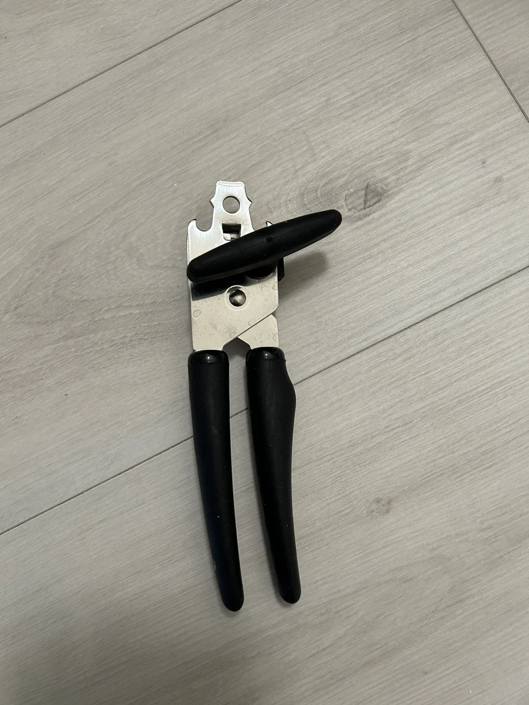 Selling a manual can opener with a black handle. It's in good working condition and ready to help you open those cans with ease!