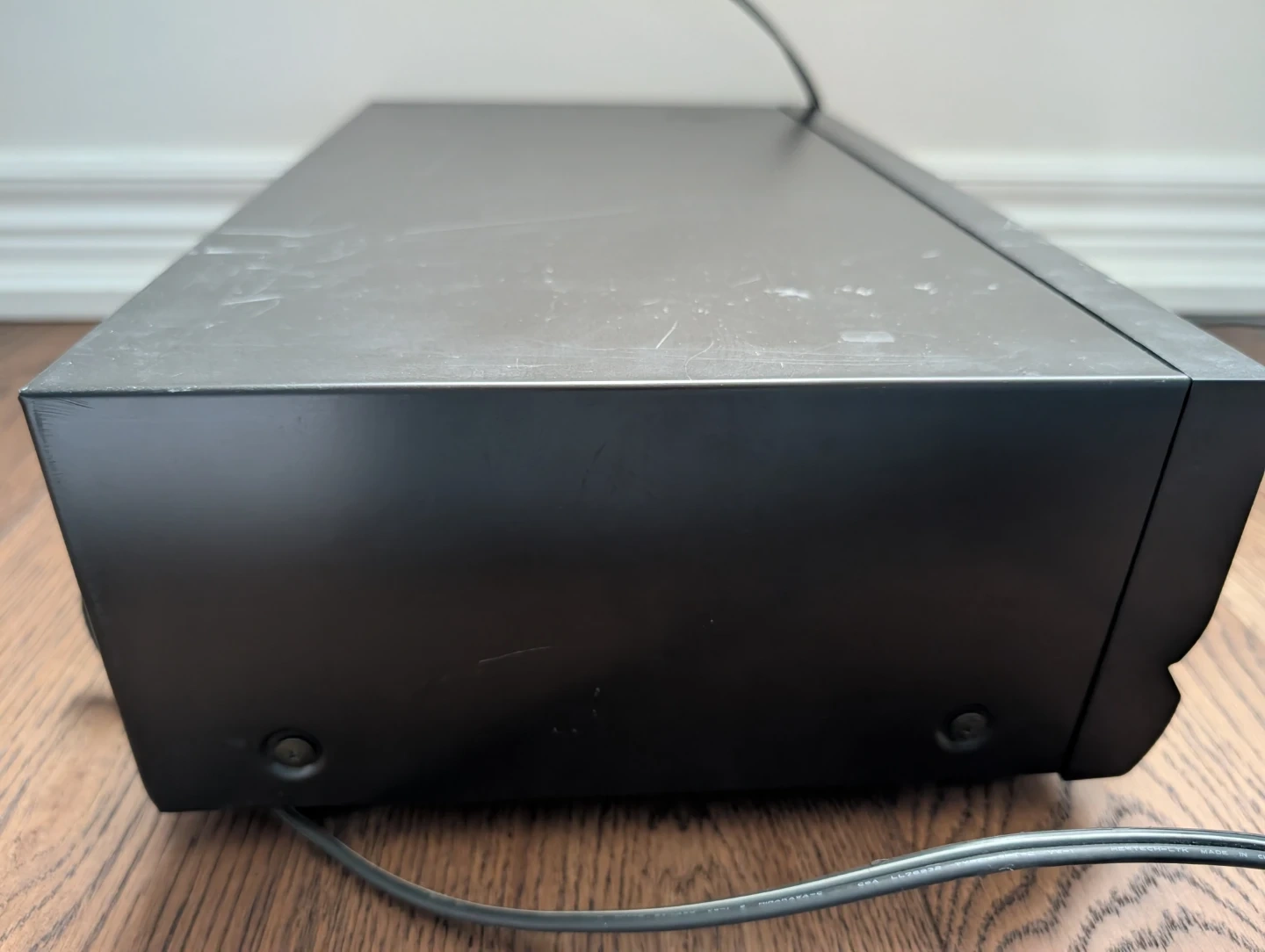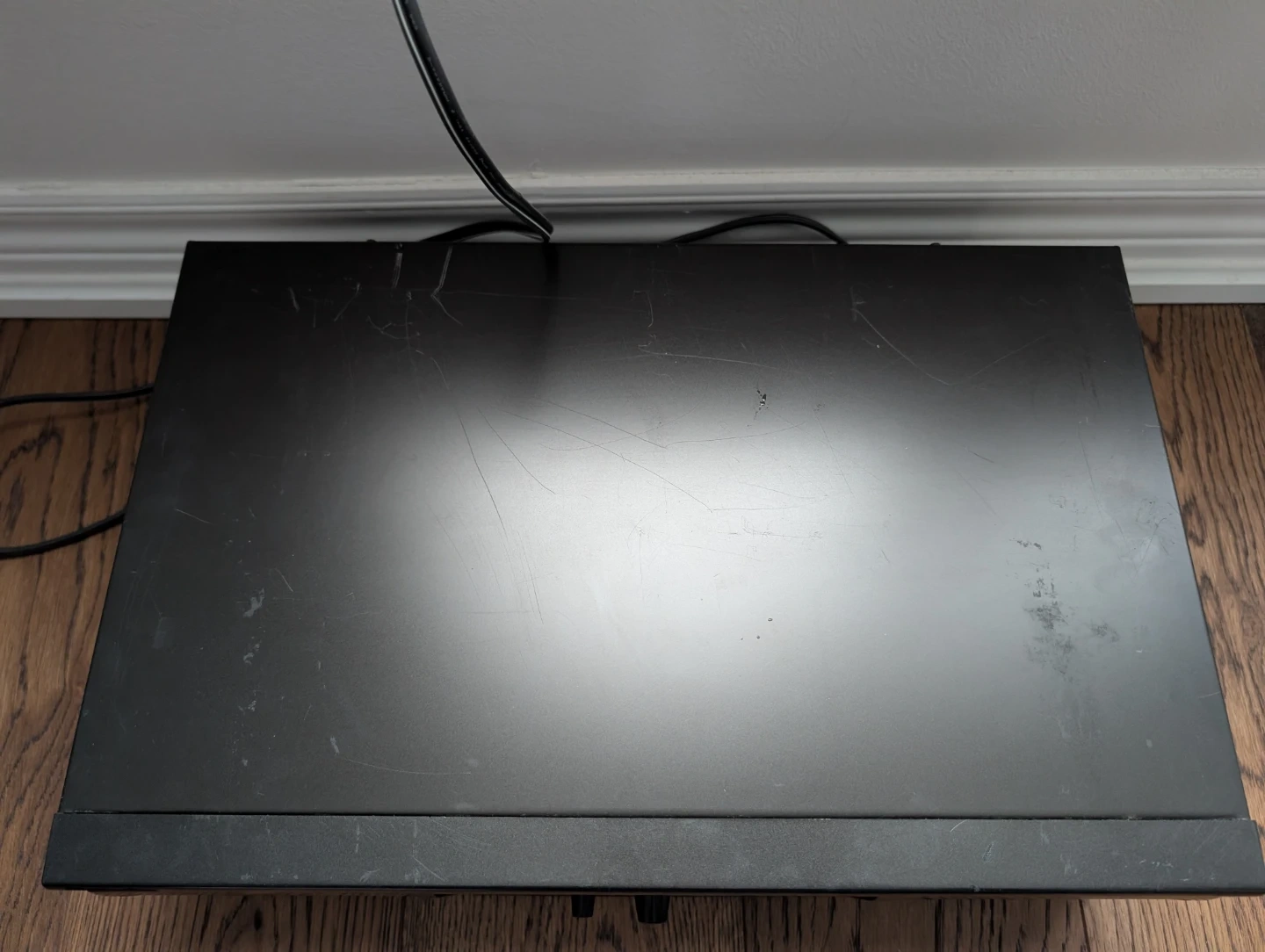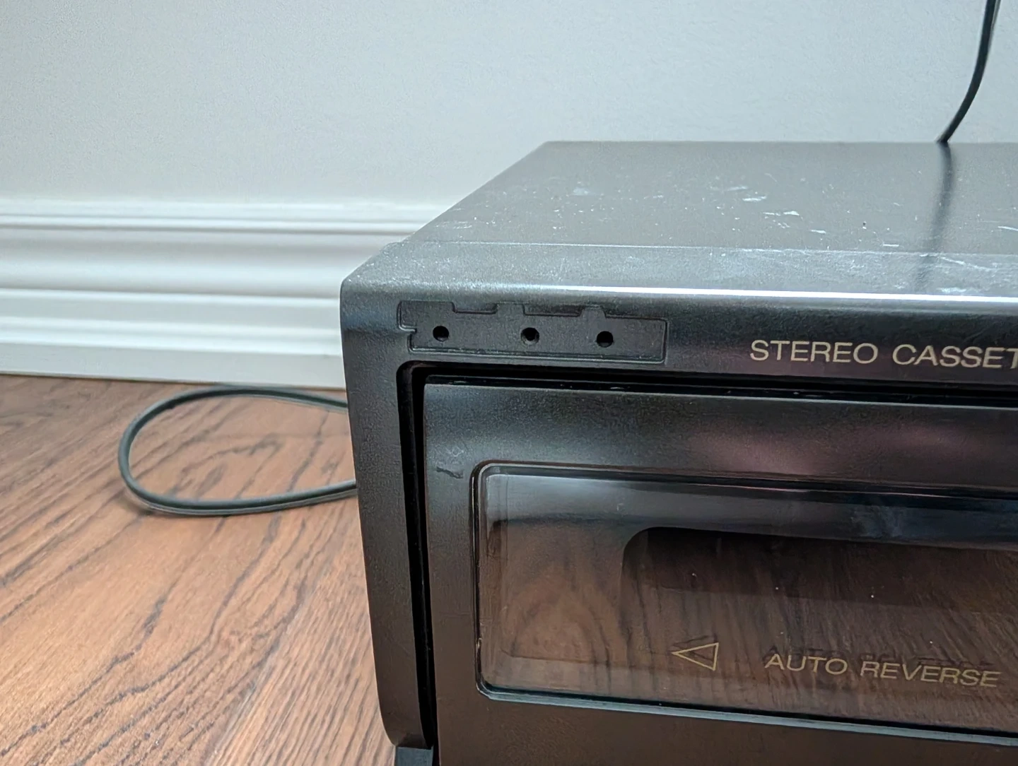 Technics RS-TR474 stereo cassette deck. It has some wear and tear, as you can see in the photos, but it's still functional. It's a double cassette deck with auto reverse.