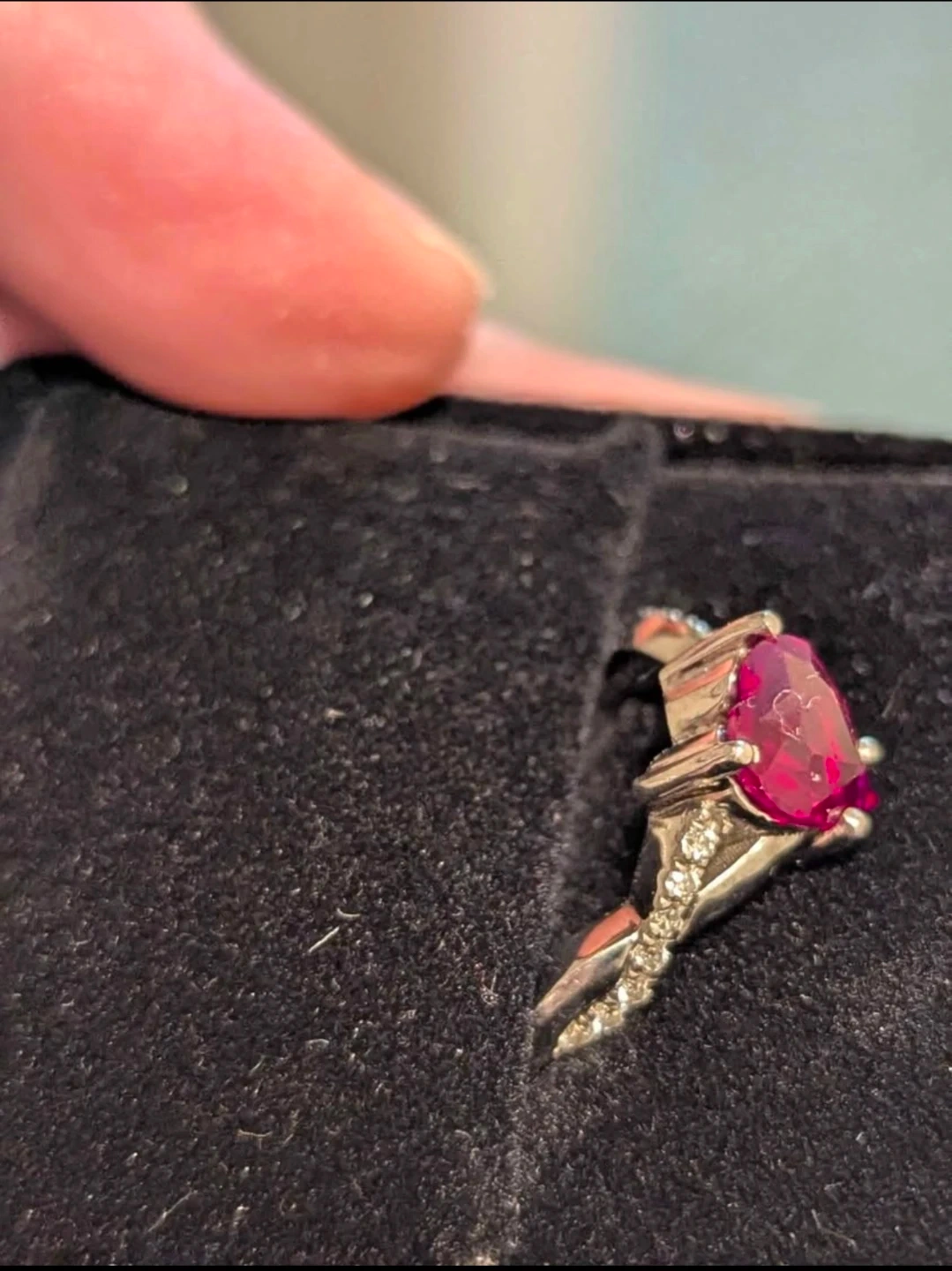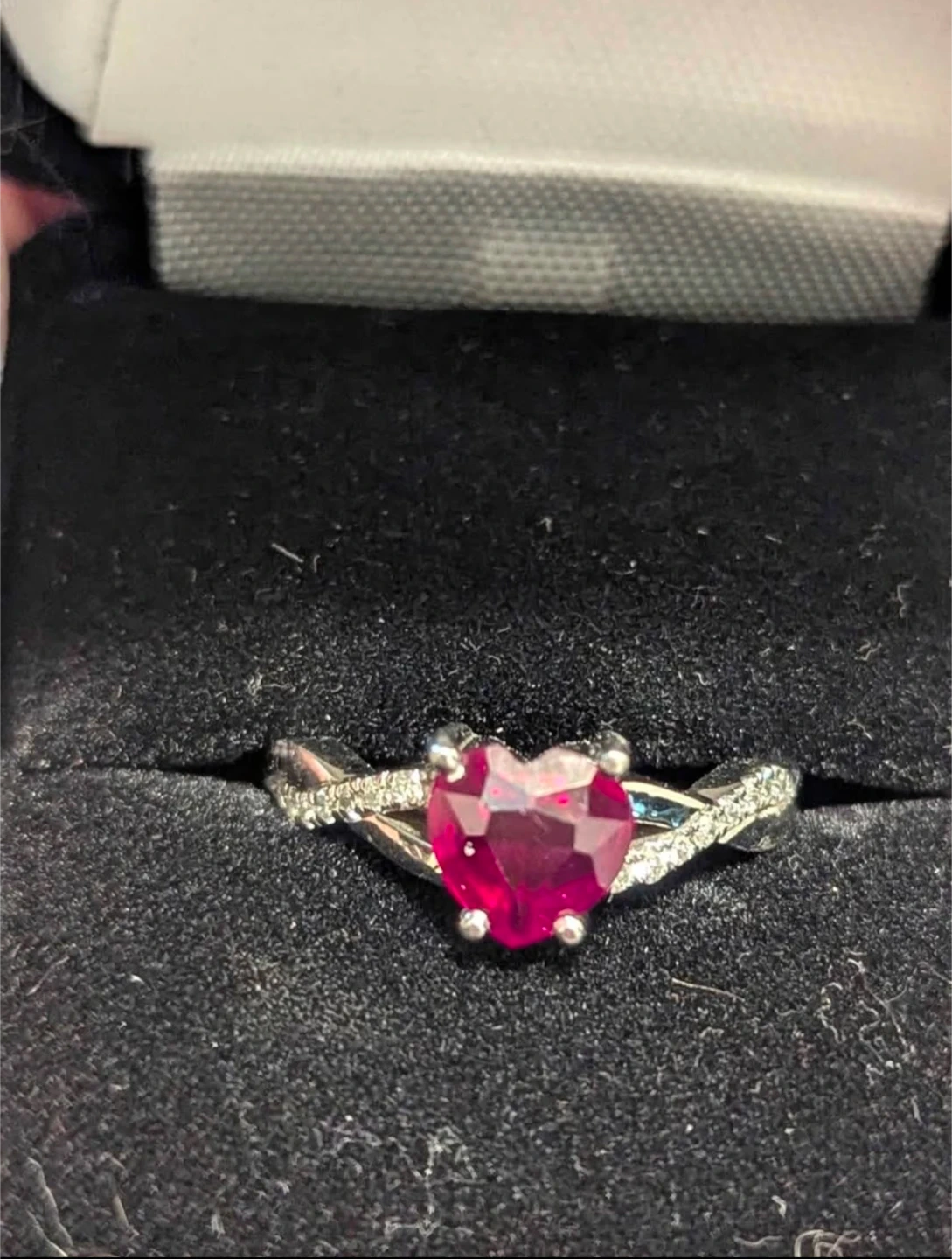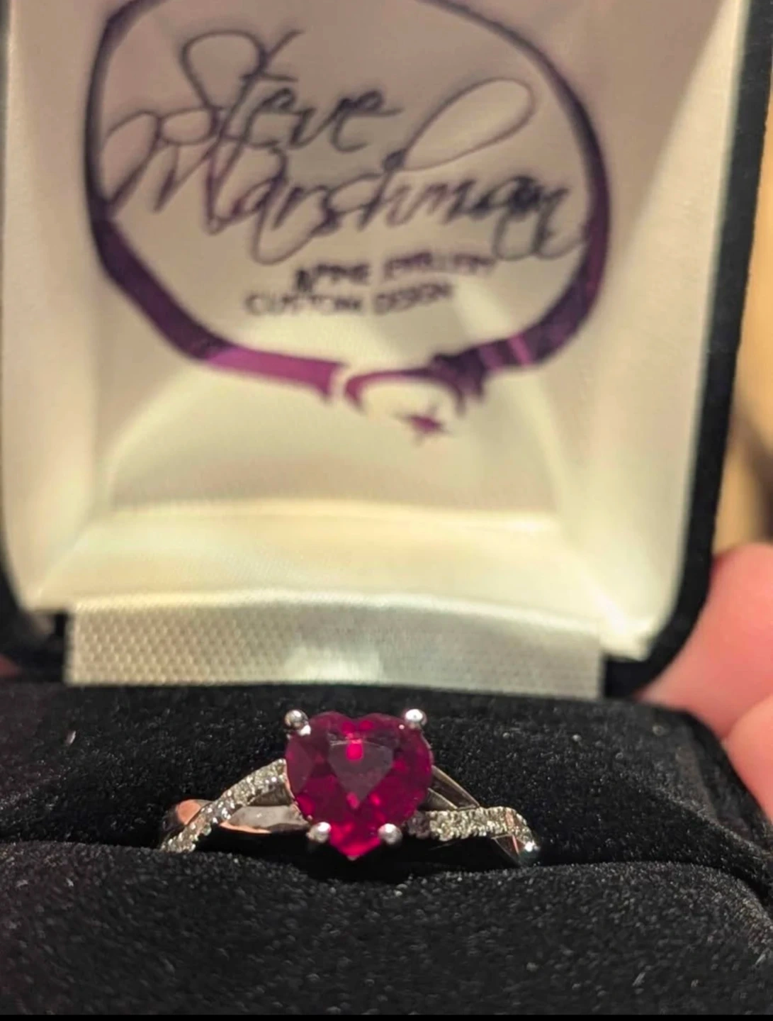 A beautiful ring featuring a heart-shaped ruby. It's a custom design by Steve Marshman, perfect for adding a touch of elegance to any outfit. Paid $1500 for it...worn few times and kept in ring box.