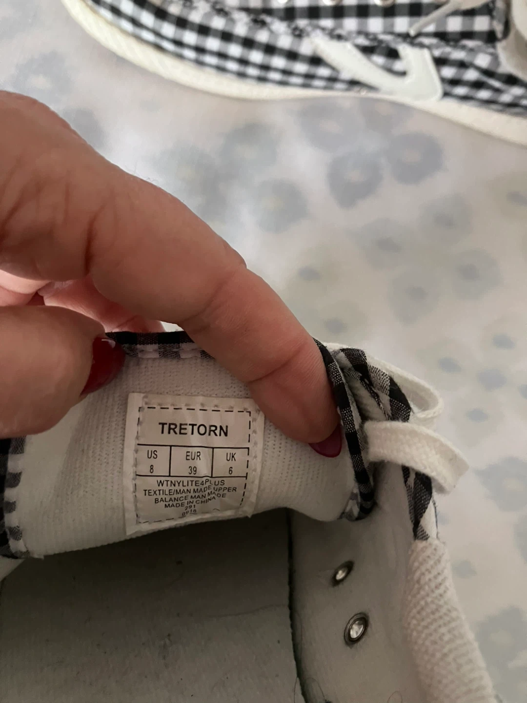 Cute Tretorn sneakers with a black and white gingham pattern! They are a US size 8. The soles have the Tretorn logo on them. Perfect for adding a touch of fun to your everyday look