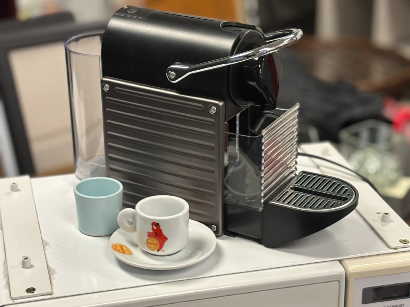 Selling a Nespresso Essenza Mini coffee machine! It's in great shape and perfect for making quick espressos at home or in the office. Compact and easy to use!