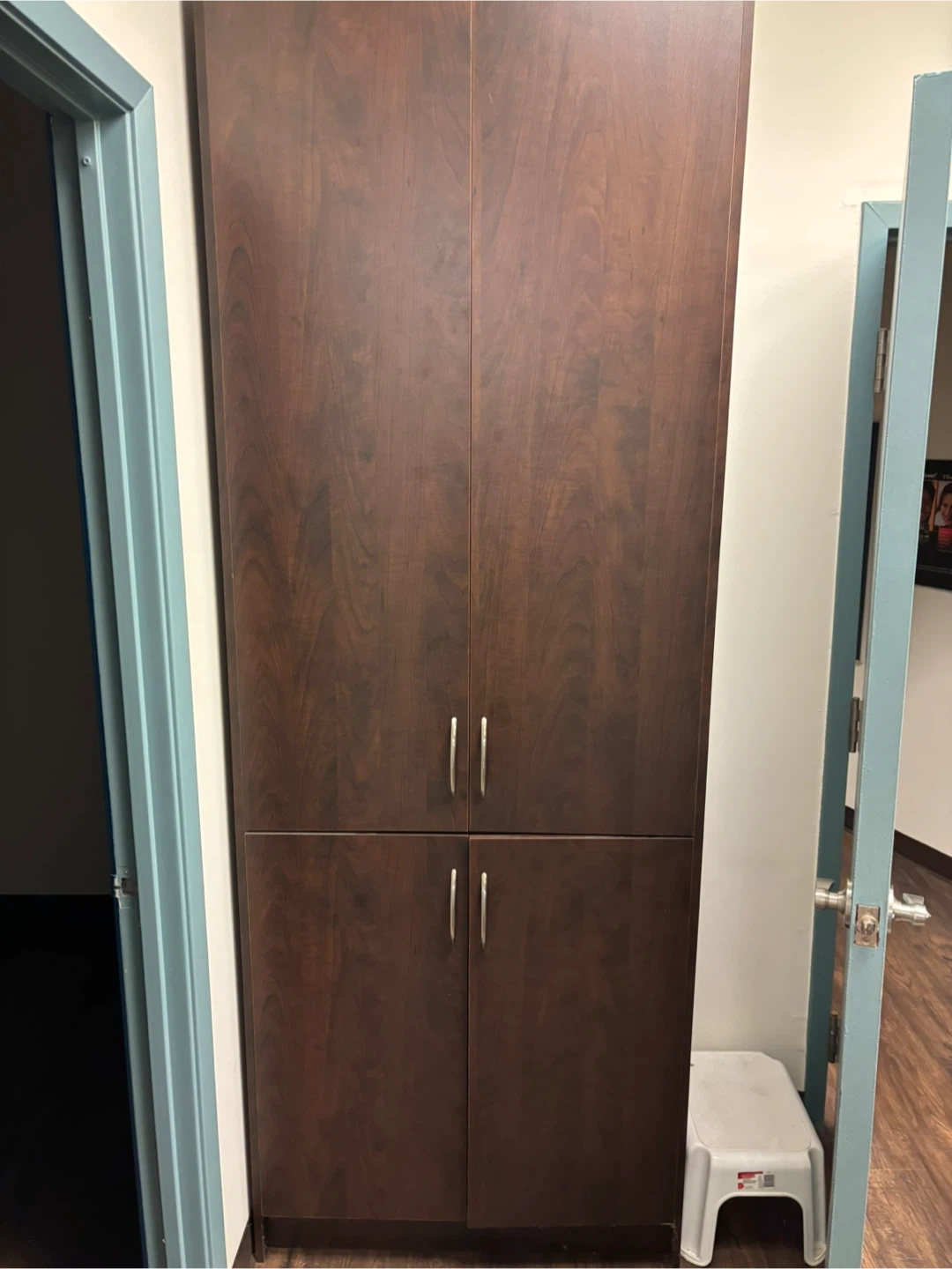 Selling a tall wooden storage cabinet. It's in good condition and perfect for adding extra storage space to any room. The cabinet is a dark brown colour and has four doors with silver handles. Great for organizing your belongings. Build by Canaan Cabinetry in Niagara Falls. Was used originally for old school X-ray film storage. Bolts against the wall for support and safety.