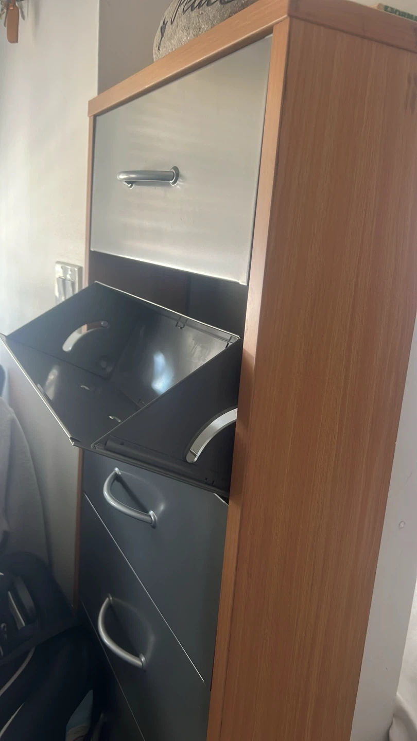 Here's a tall dresser with seven drawers, perfect for maximizing storage space in a small area. The drawers are a nice grey colour and have silver handles. It's in great shape and ready for a new home!
