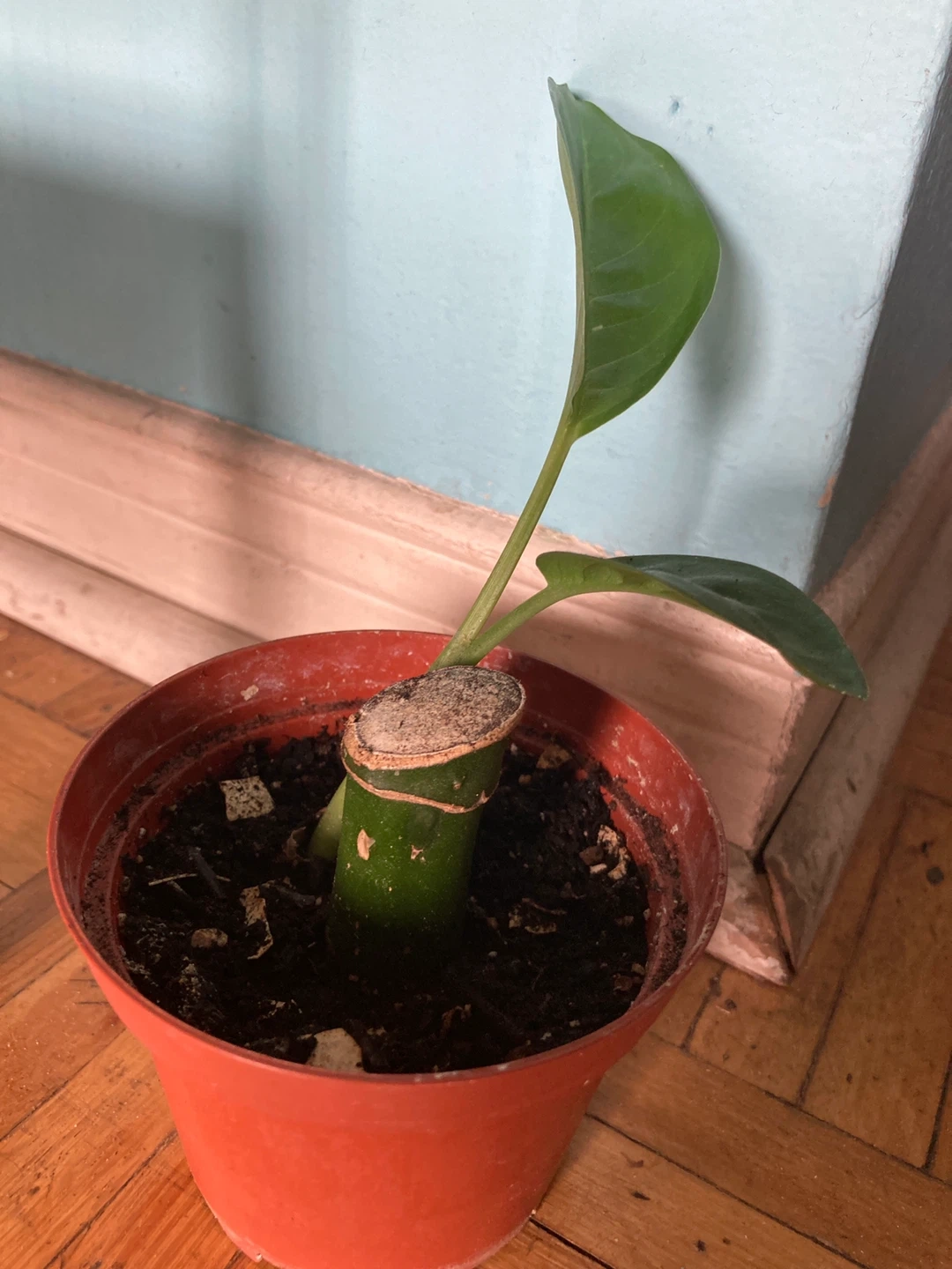 I'm selling a potted plant cutting. It's a great way to start a new plant! It's currently in a plastic pot with soil.