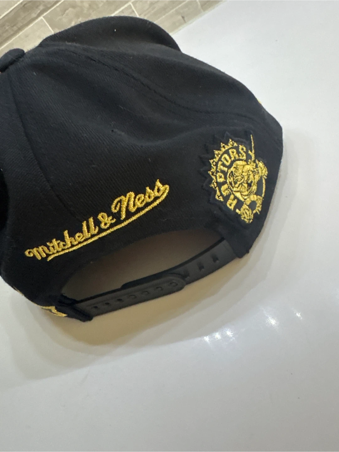 Selling a Mitchell & Ness Toronto Raptors adjustable hat. It's black with gold accents and features the Raptors logo. Great for any fan!