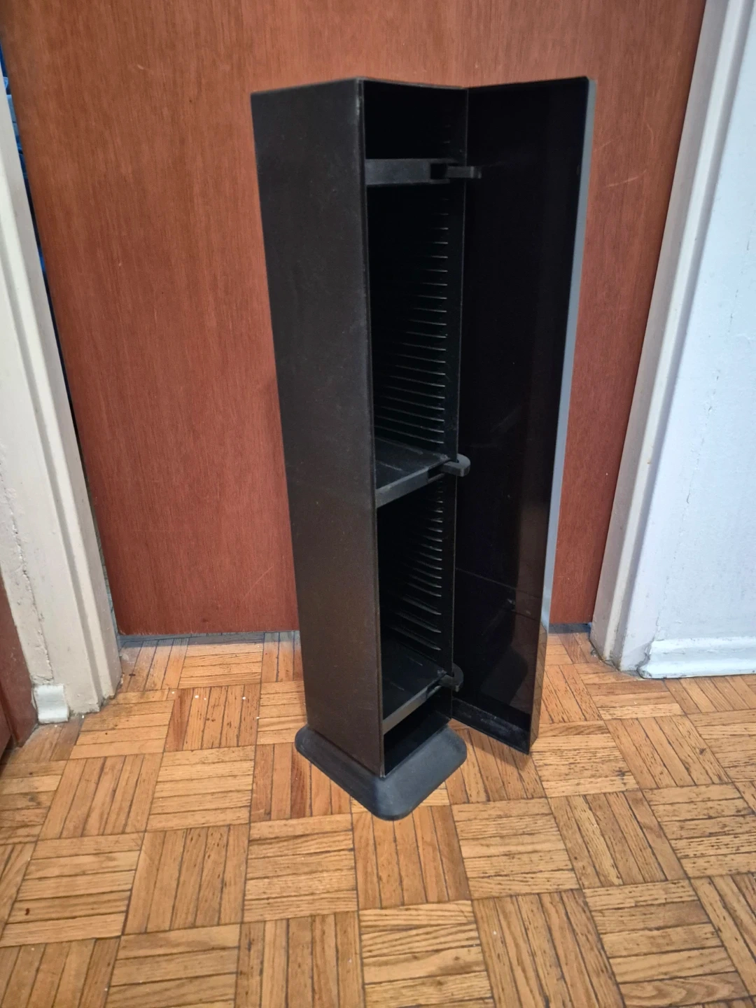 Selling a black Atlantic CD storage tower in great condition. It's perfect for organizing your media collection and keeping things tidy. The tower has shelves to hold your CDs and It's a sleek and practical addition to any entertainment space