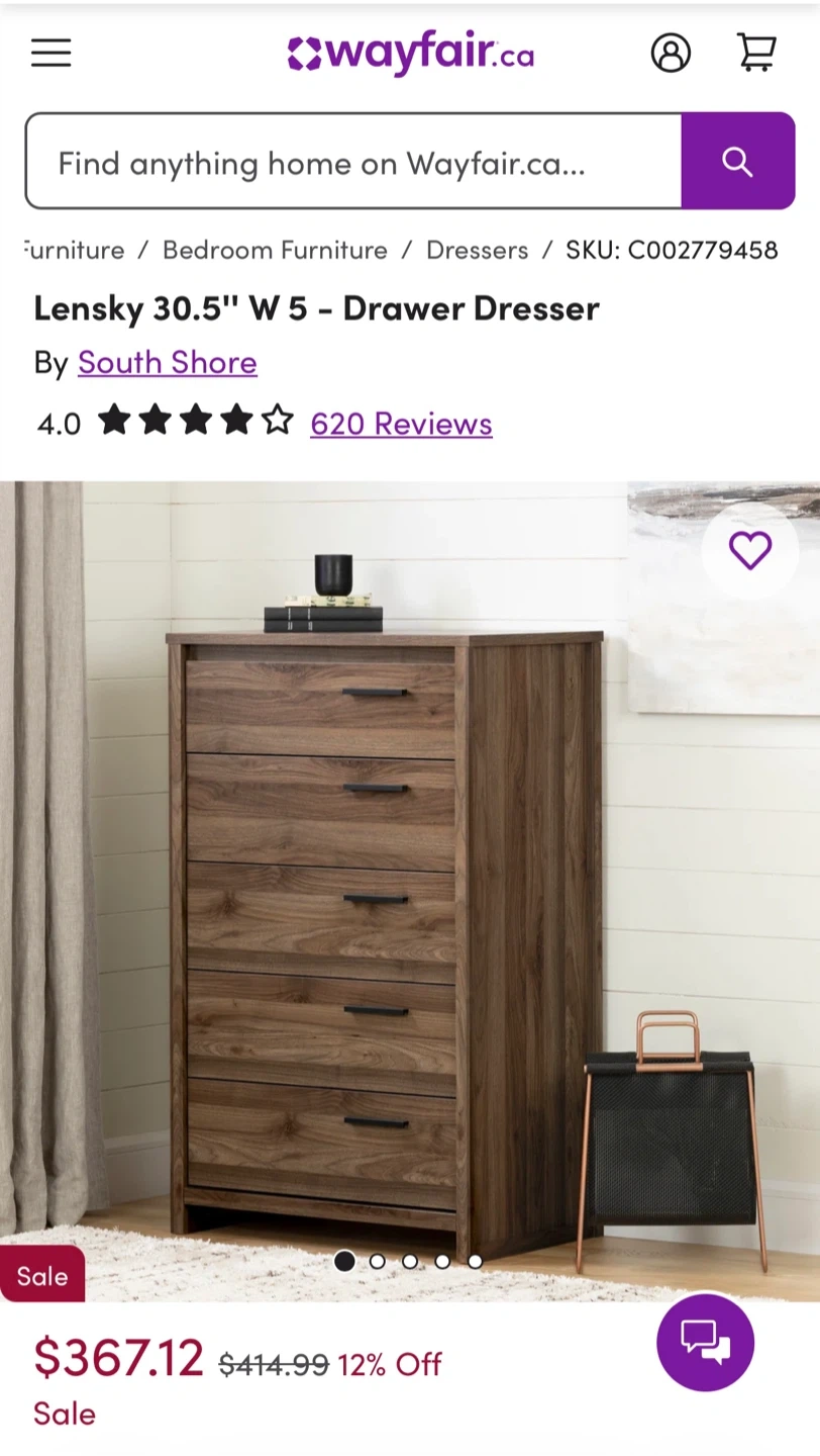 South Shore Lensky 2-Drawer Nightstand and Tall dresser