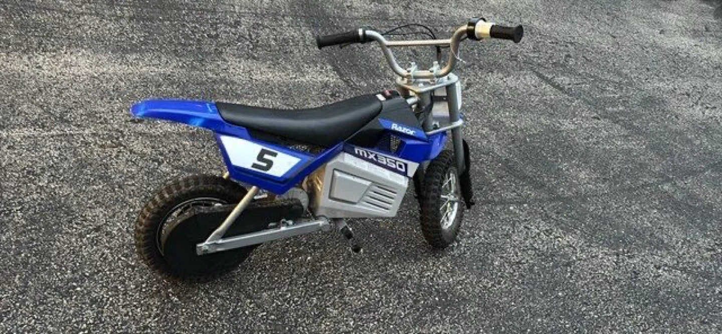 Selling a Razor MX350 Dirt Rocket. It's a ride-on bike that's perfect for kids who want to experience the thrill of off-road riding. It features authentic dirt bike frame geometry and supercross-inspired styling. Great for some outdoor fun!