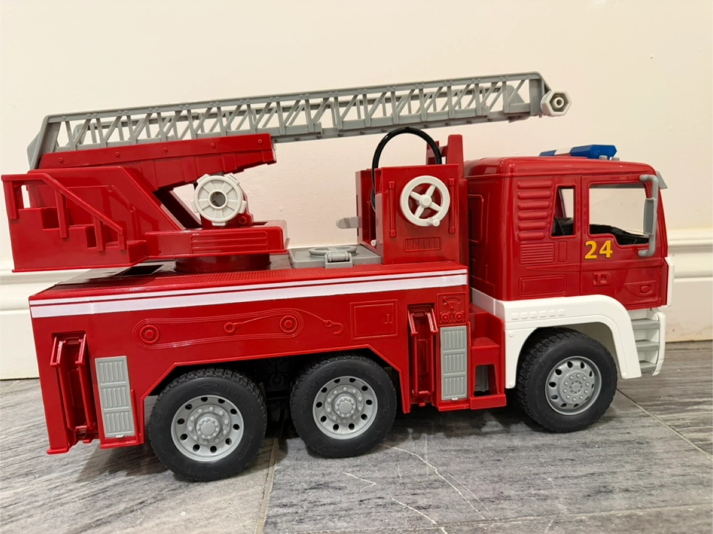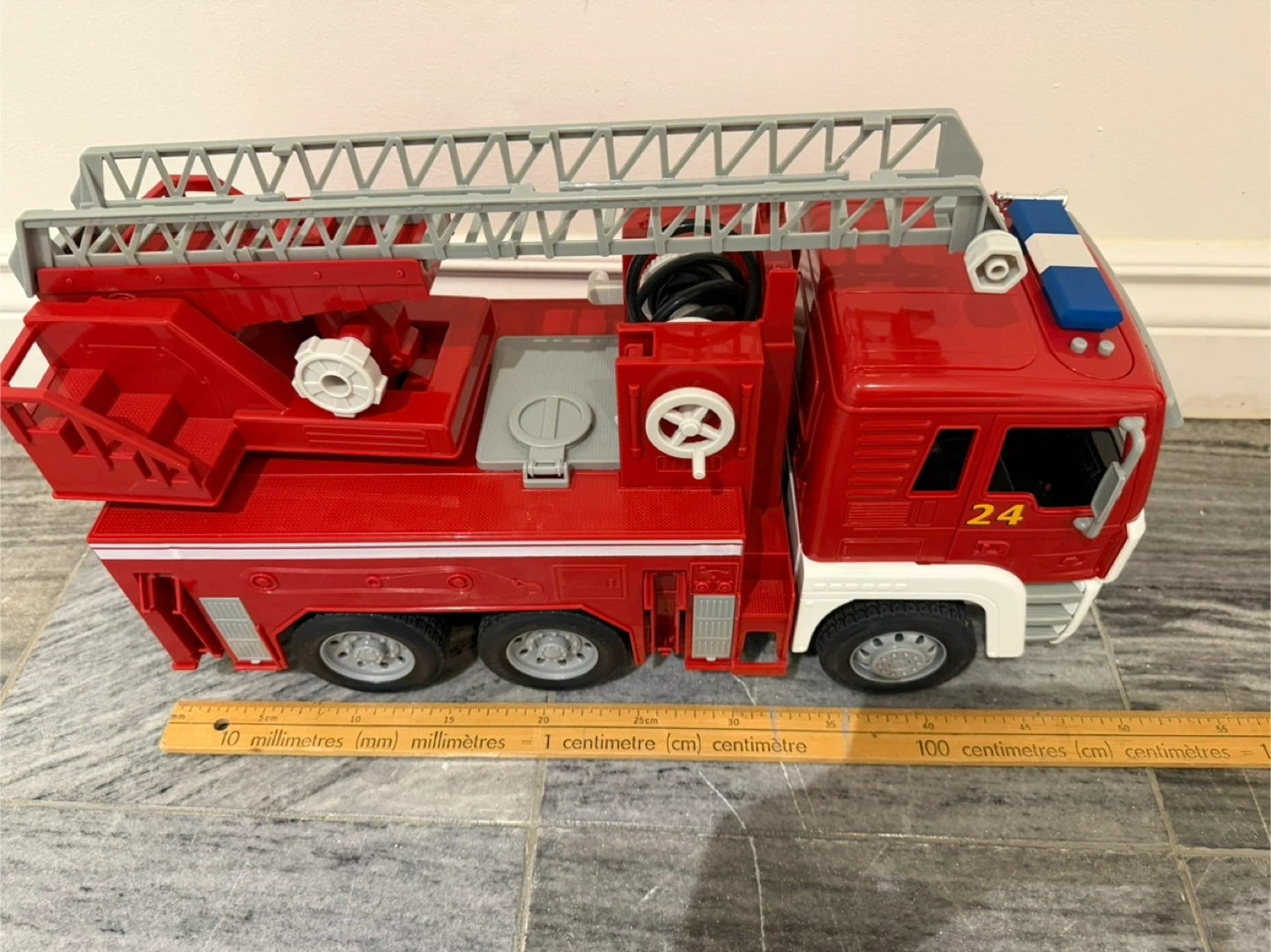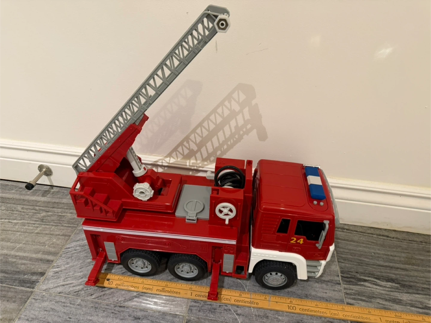 Toy firetruck in good condition! It's a fun toy for kids who love vehicles and emergency services. The ladder extends and the wheels roll smoothly. Perfect for imaginative play!