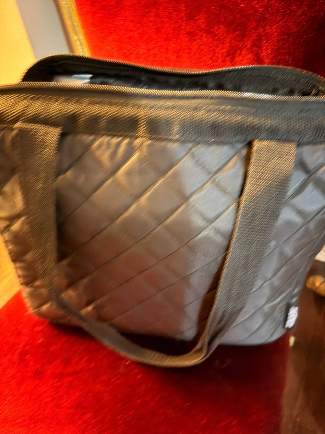 Lunch bag tote, perfect for keeping your meals fresh on the go! It's in good condition and ready for its next adventure. Features a quilted exterior and insulated interior to keep your food at the right temperature. Has a zipper closure to keep everything secure