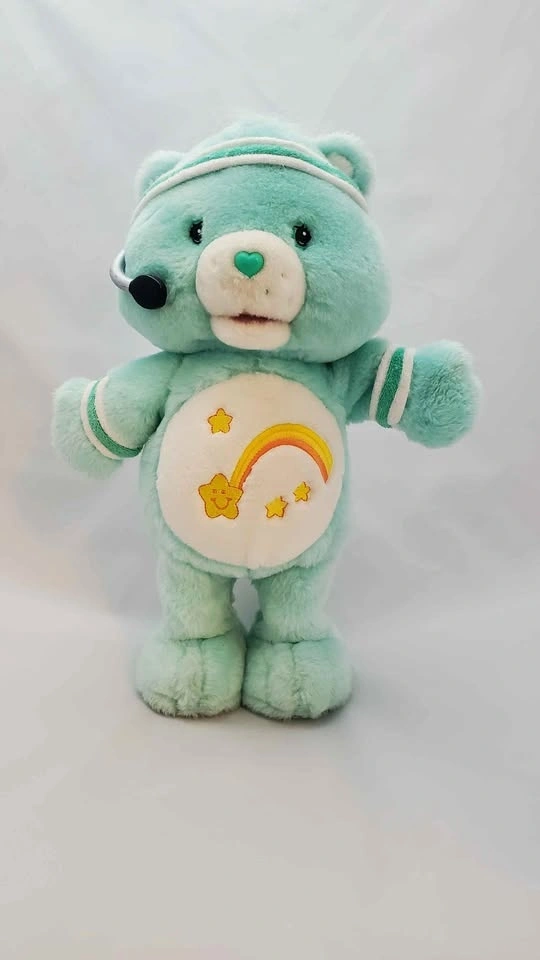 Adorable 2004 Care Bears Wish Bear plush with headset. Some stains/dirty marks as shown in photos. Was animated but when I tried new batteries the animation was not working. Some rust in one battery area, maybe if this was cleaned up it would work again.