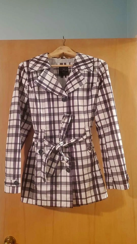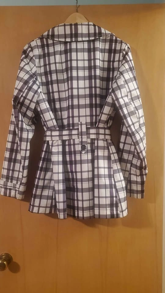Faded Glory Black And White Plaid Trench Coat, Rain Coat M (8/10