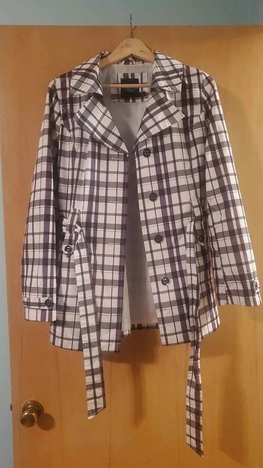 Faded Glory Black And White Plaid Trench Coat, Rain Coat M (8/10