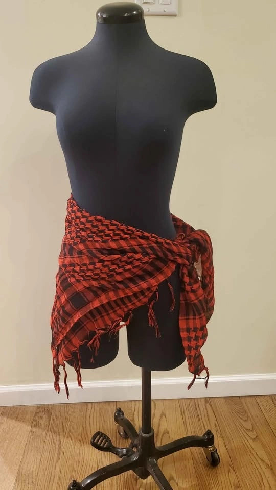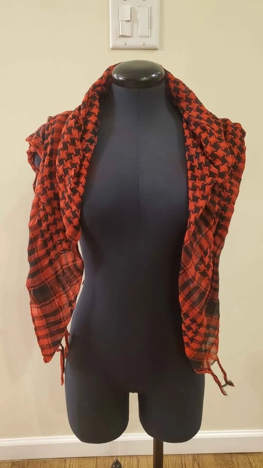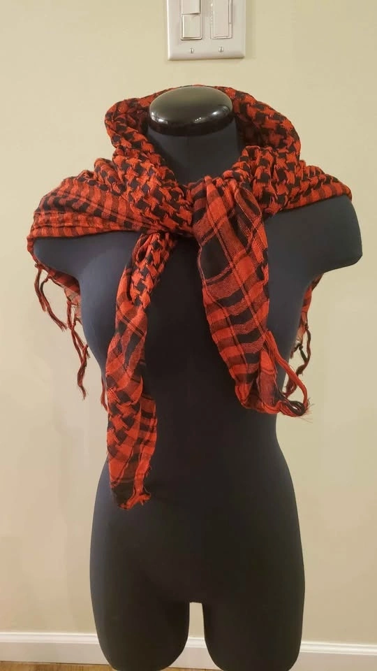 Red and Black Patterned Scarf, Shawl, Top, Headwear, Wrap