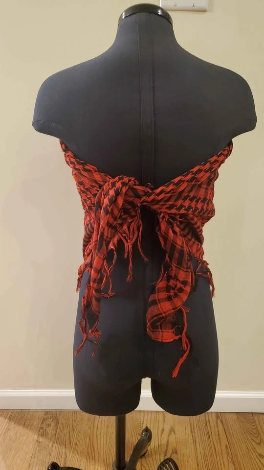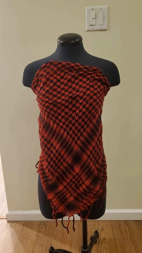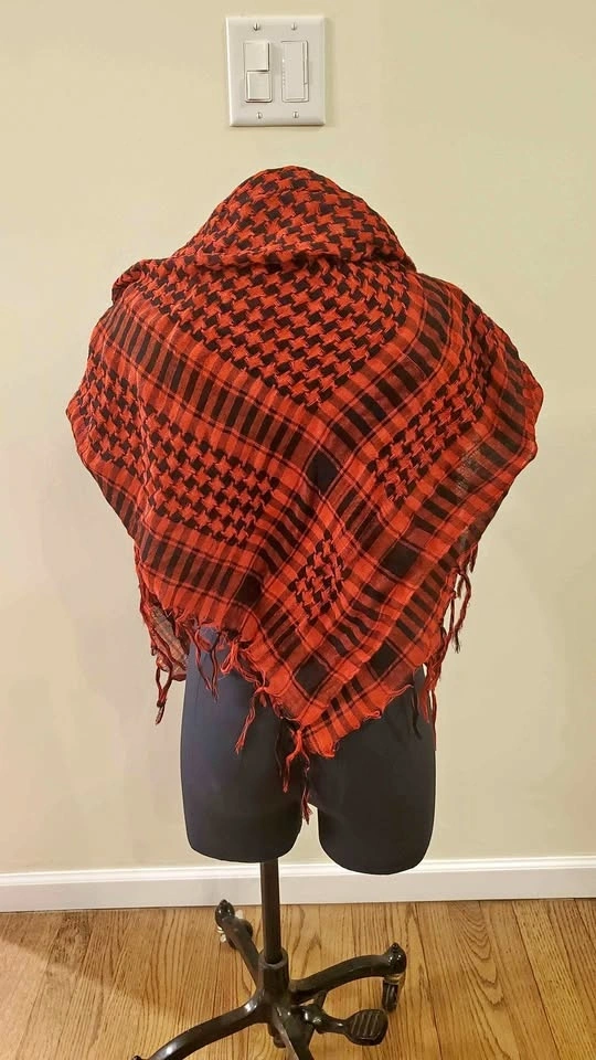 Red and Black Patterned Scarf, Shawl, Top, Headwear, Wrap