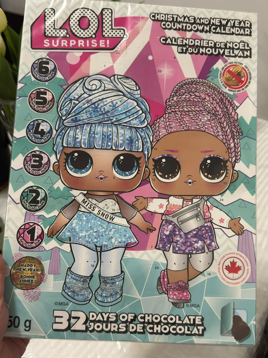 I have two brand new chocolate advent calendars for sale: one LOL Surprise! and one Disney Christmas themed. Both calendars have 32 days of chocolate and expire in July 2028. Perfect for the holidays!