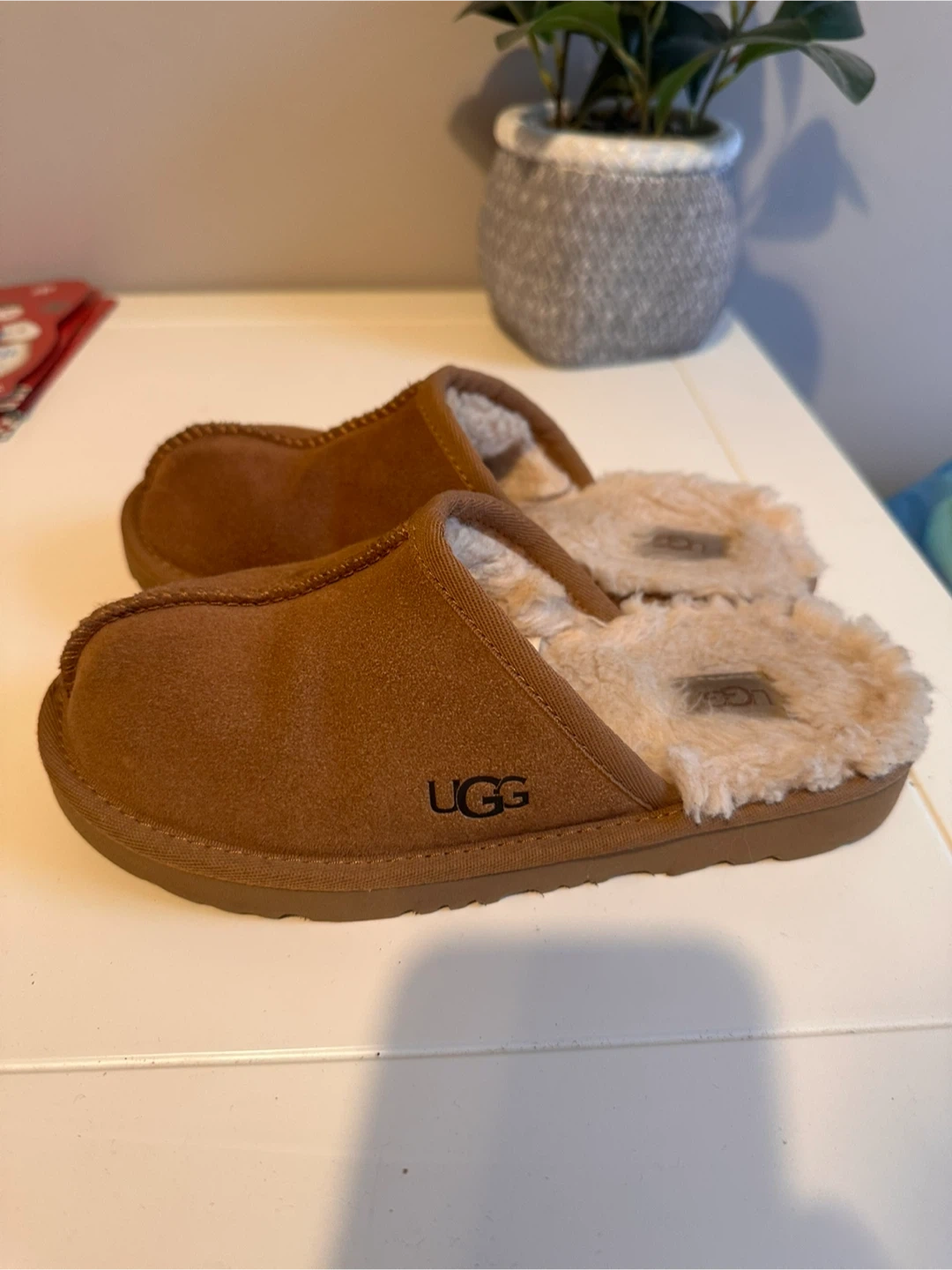 Buy & SellKids UGG slippers size 2Kids UGG slippers size 2$30Kids Cozy up with these UGG slippers! They're a warm brown suede with a fluffy interior. Kids size 2 Pick up Queen and Parliament $30ConditionLike newWHERE TO MEETCheck LocationView MapSELLERverifiedJuneDistillery District913 reviews0 chats·0 favorites·25 viewsSEND CHAT TO SELLERHi June! I’m interested in your listing.Hi June! I’m interested in your listing.Get the Karrot app to chatSign In to chat