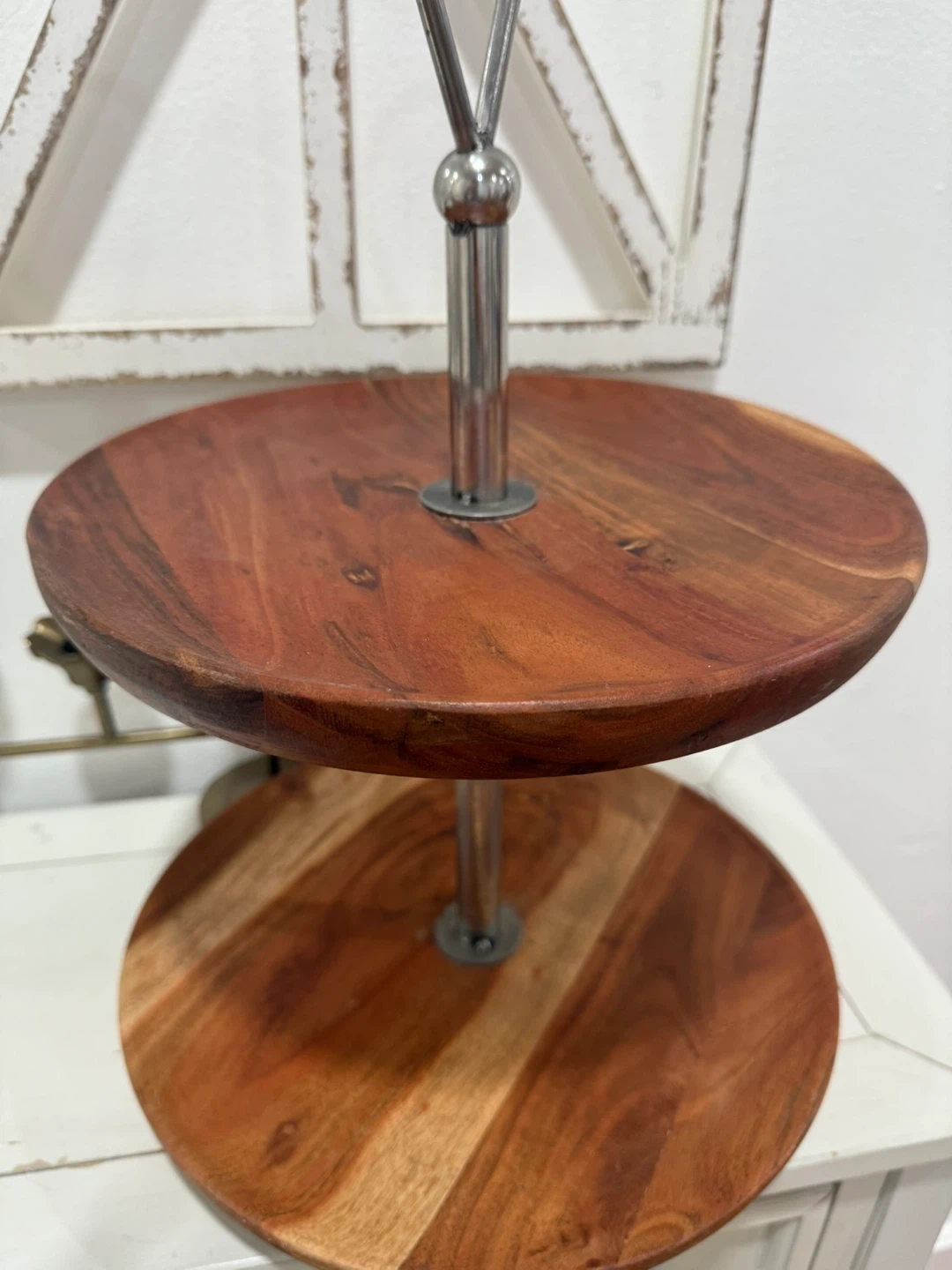 Two-Tiered Wood & Metal Serving Stand
