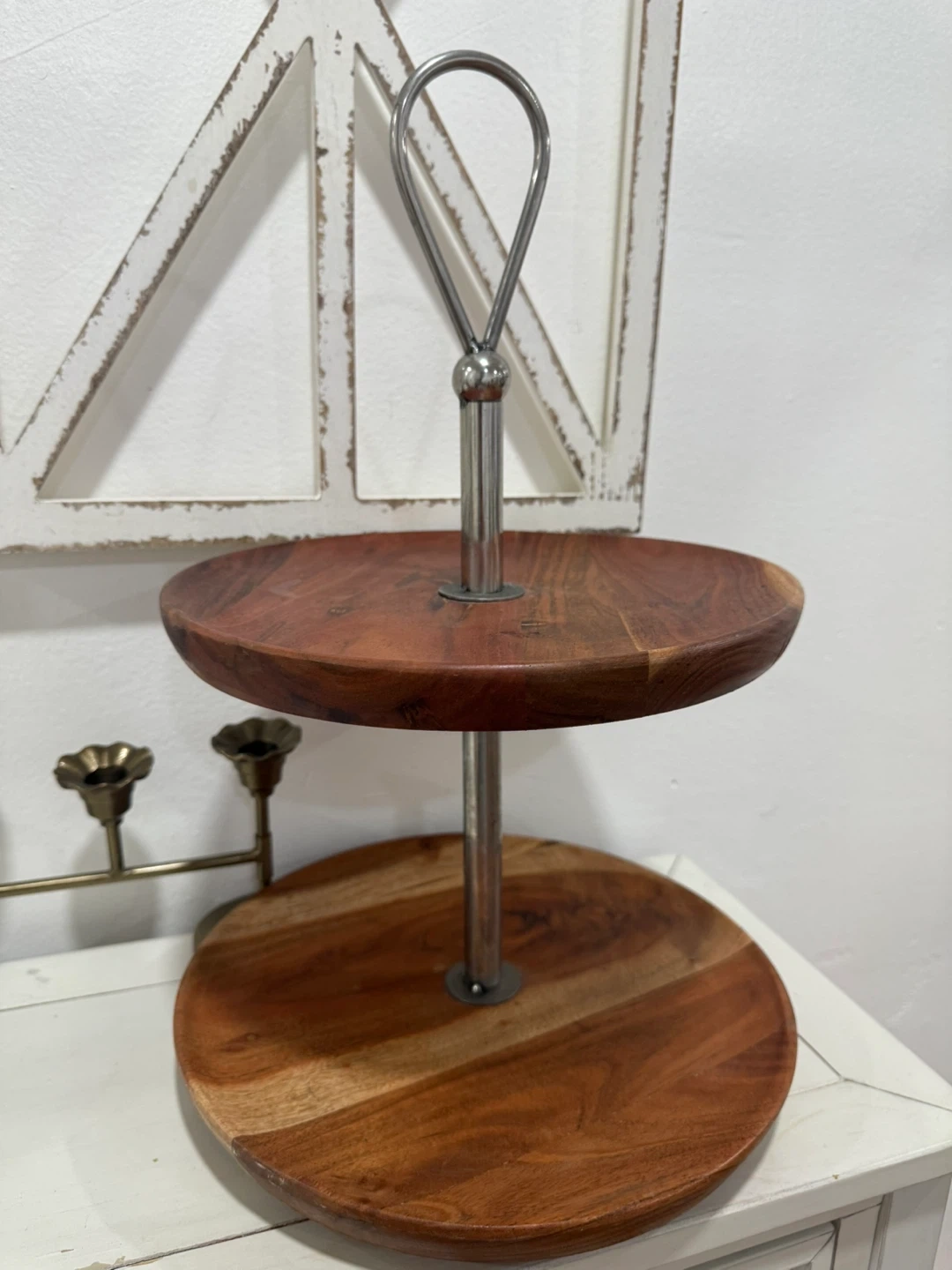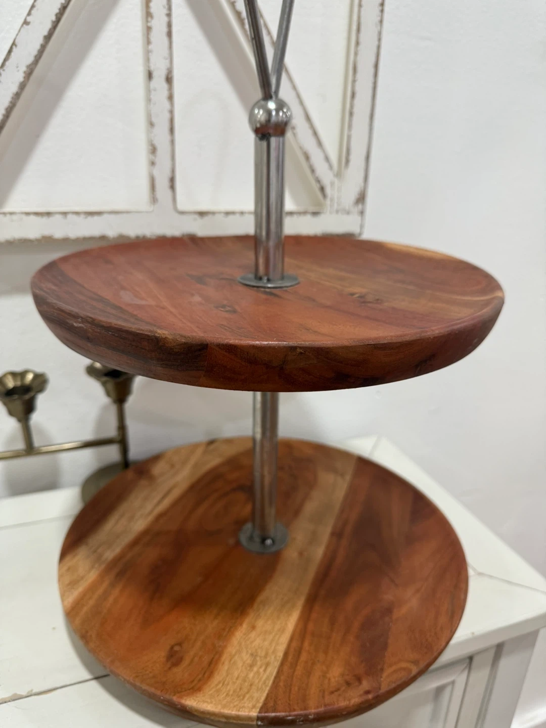 Two-Tiered Wood & Metal Serving Stand