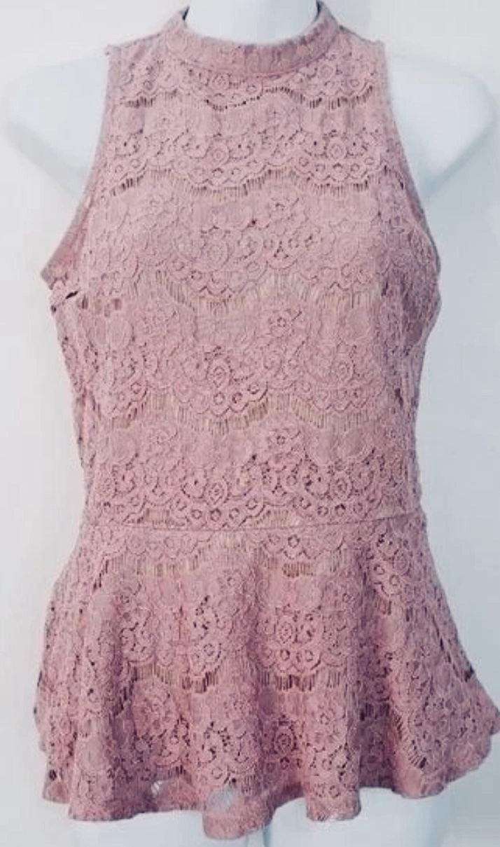 Beautiful Love, Fire lace peplum top in a soft mauve / dusty rose pink, paired with a matching scrunchie pearl satin headband. Feminine, elegant, and perfect for brunch, date night, baby showers, or spring events.