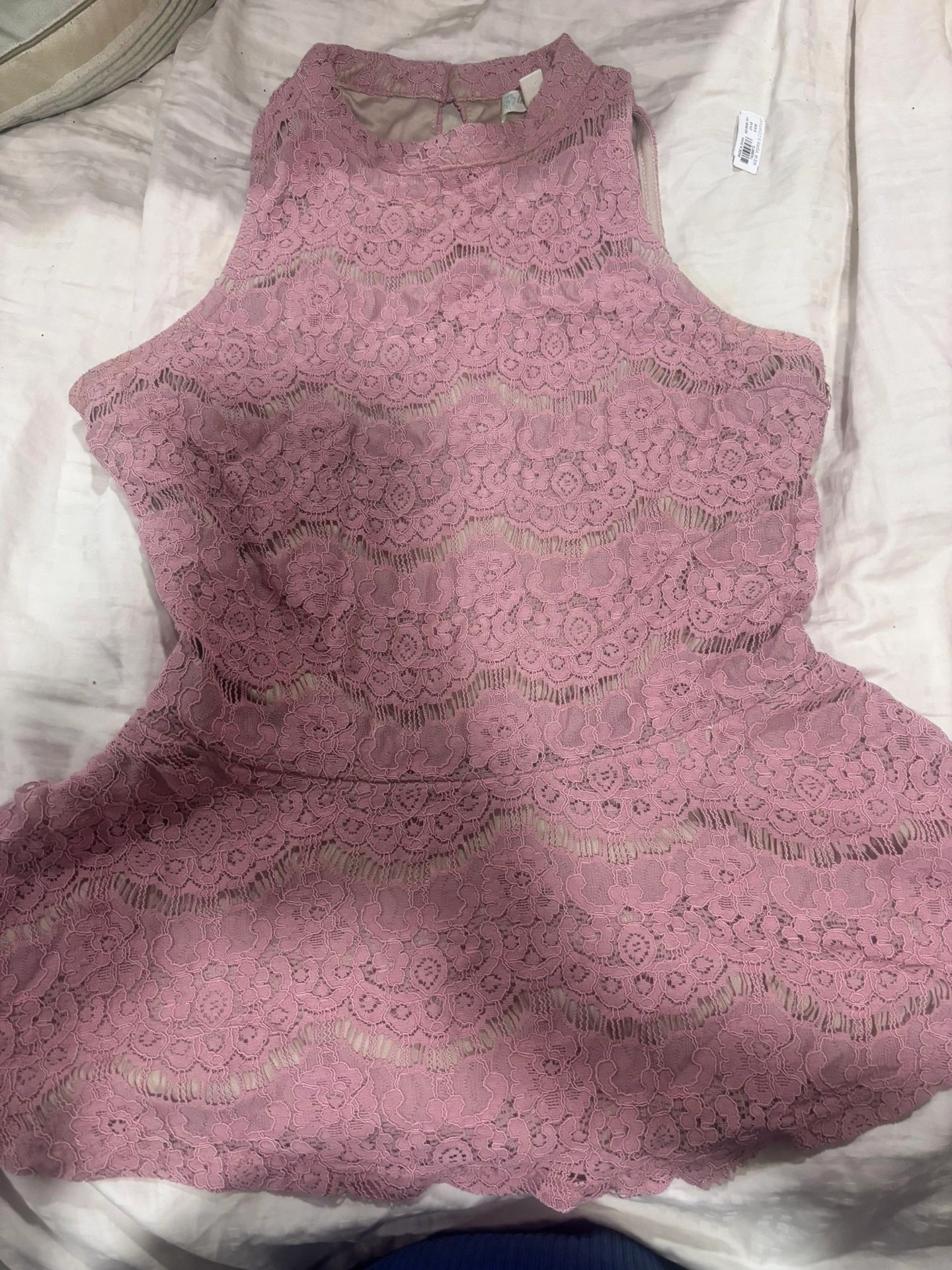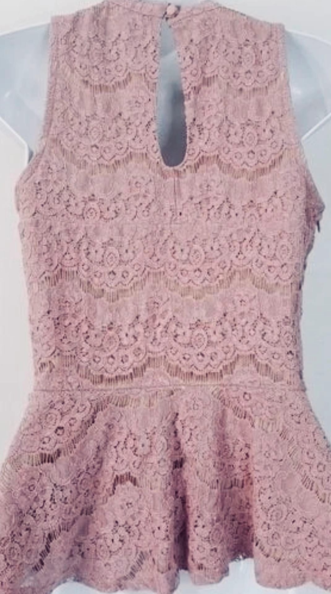 Beautiful Love, Fire lace peplum top in a soft mauve / dusty rose pink, paired with a matching scrunchie pearl satin headband. Feminine, elegant, and perfect for brunch, date night, baby showers, or spring events.