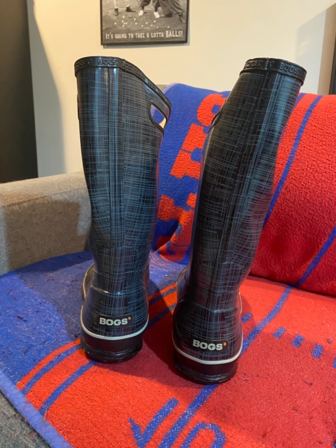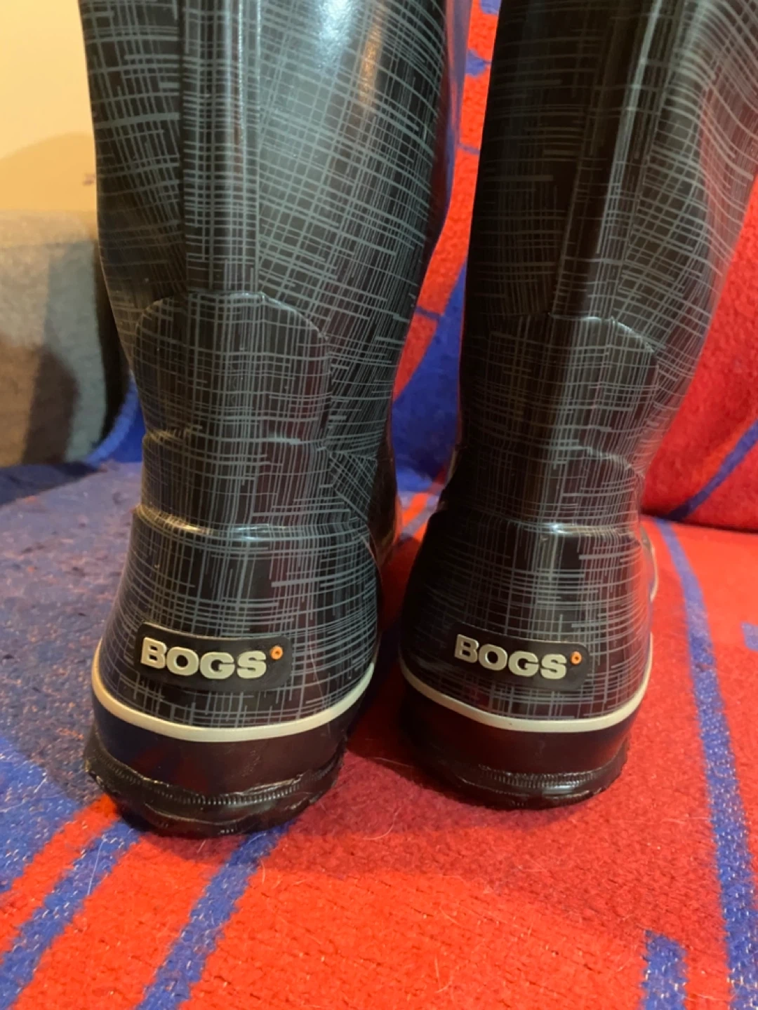 Selling a pair of Bogs Linen Rainboots in women's size 12. Never worn. These rainboots are made with a rubber upper and balance of rubber, and man-made materials. They're in great shape and ready for the rainy season!
