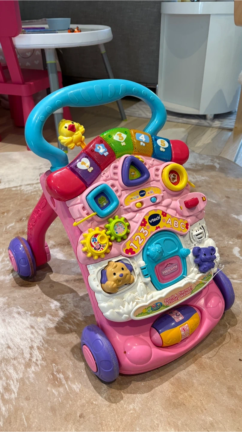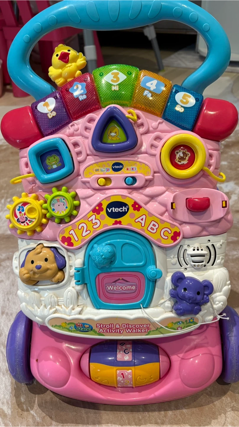 This VTech Stroll & Discover Activity Walker is perfect for little ones learning to walk and explore! It's in great condition and ready for a new home. The walker features lots of fun activities to keep your child entertained while they develop their motor skills