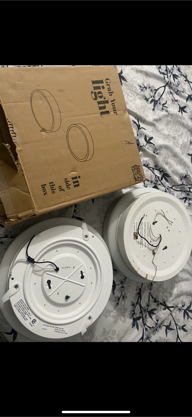 Selling a set of two flush mount ceiling lights. They're in great condition and come with the original box. Perfect for adding some simple lighting to any room