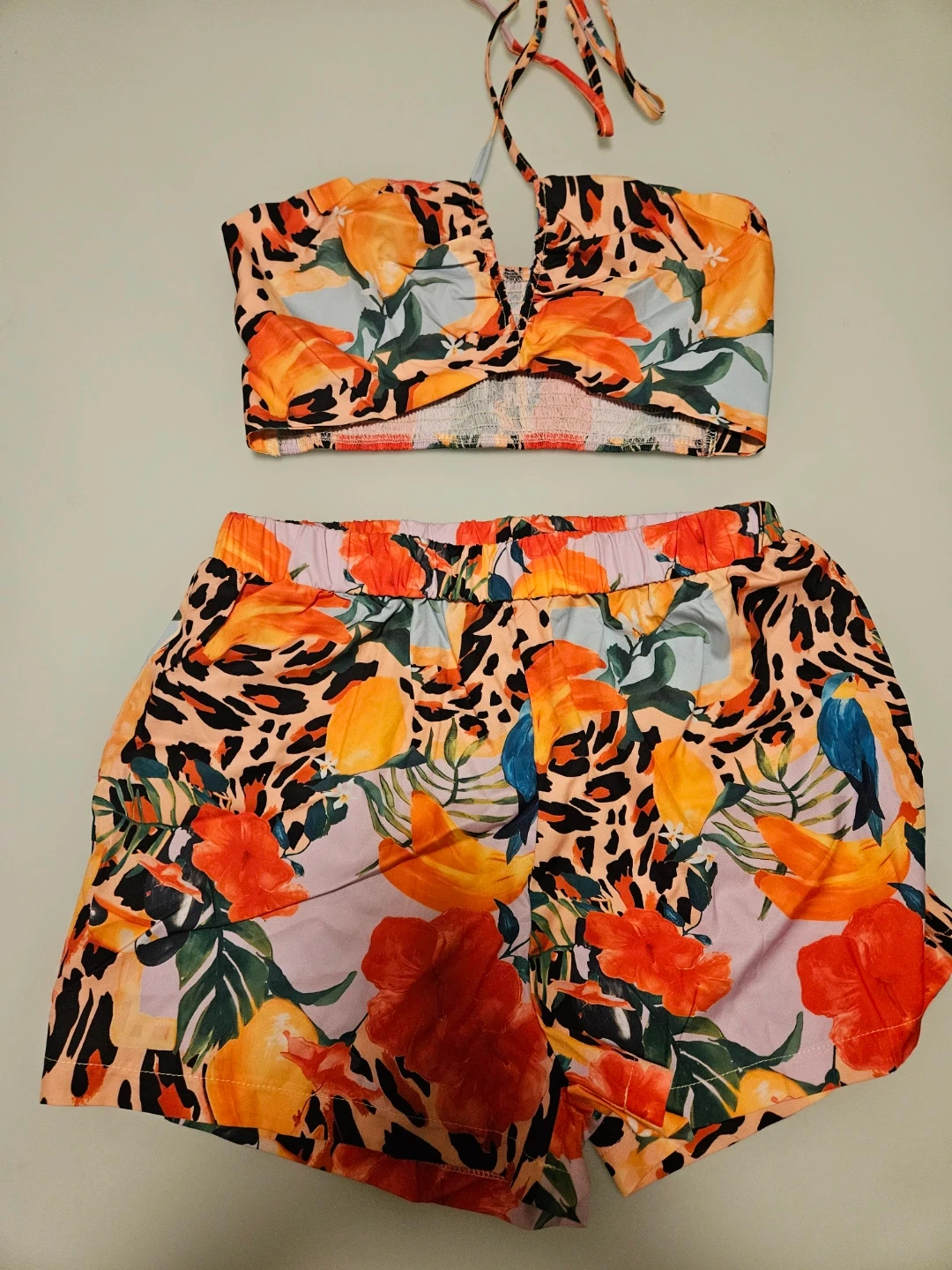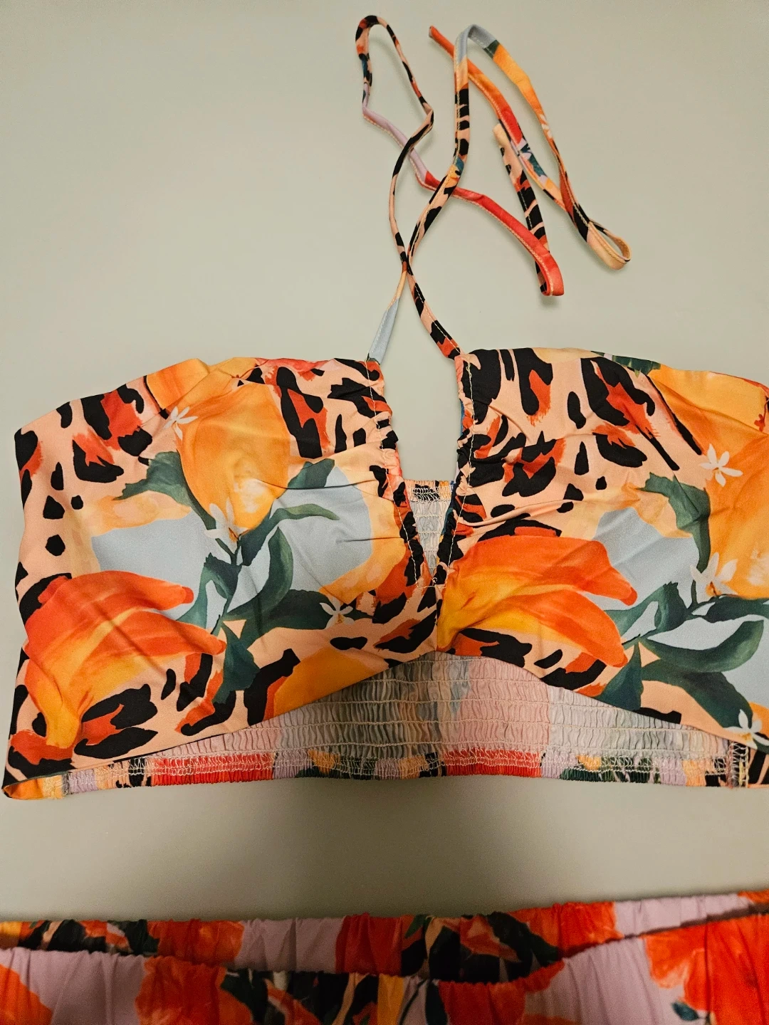 Cute floral print two-piece set in size L. The set is made of 95% polyester and 5% elastane. Perfect for summer! Brand new, never worn.
