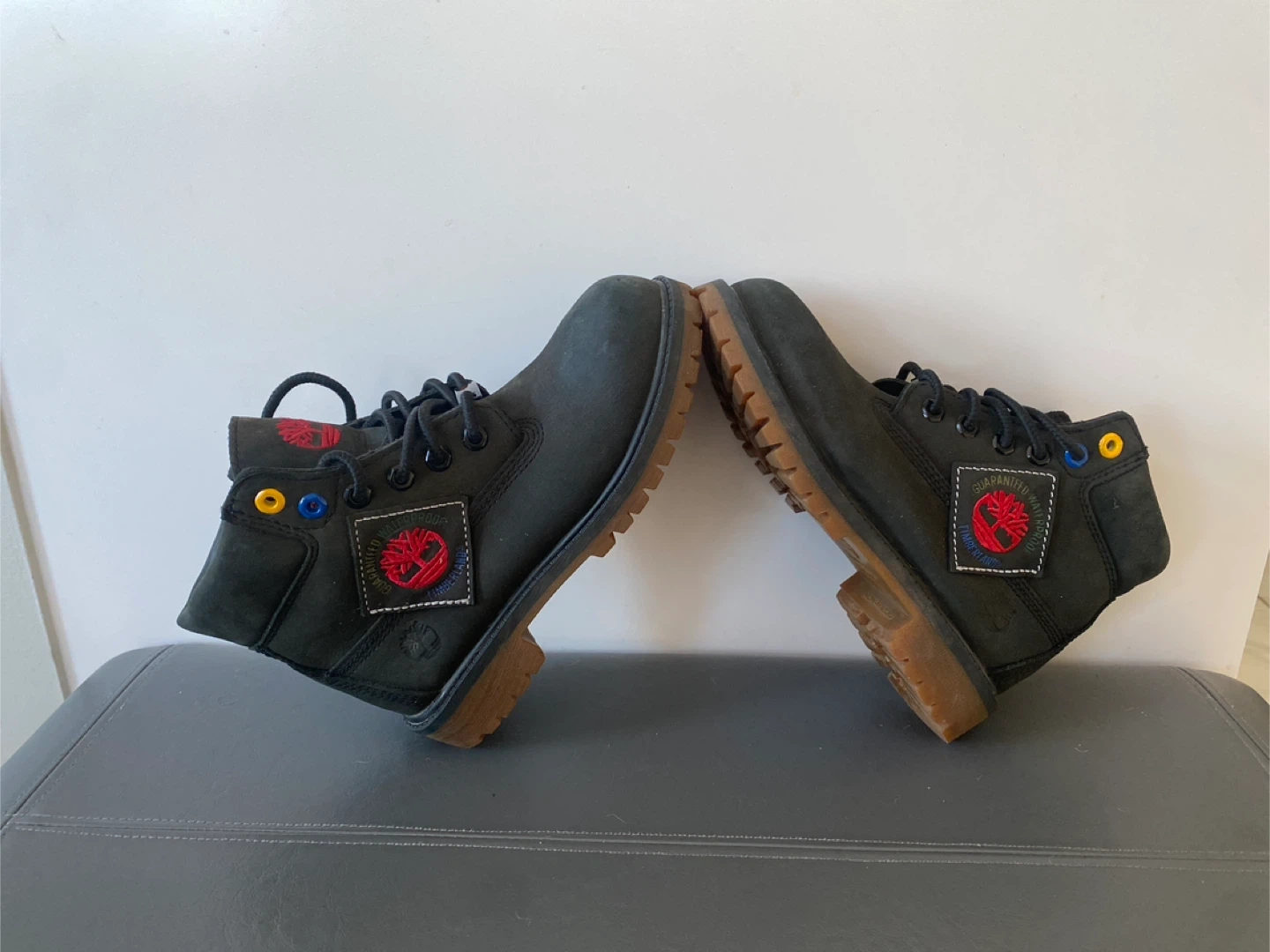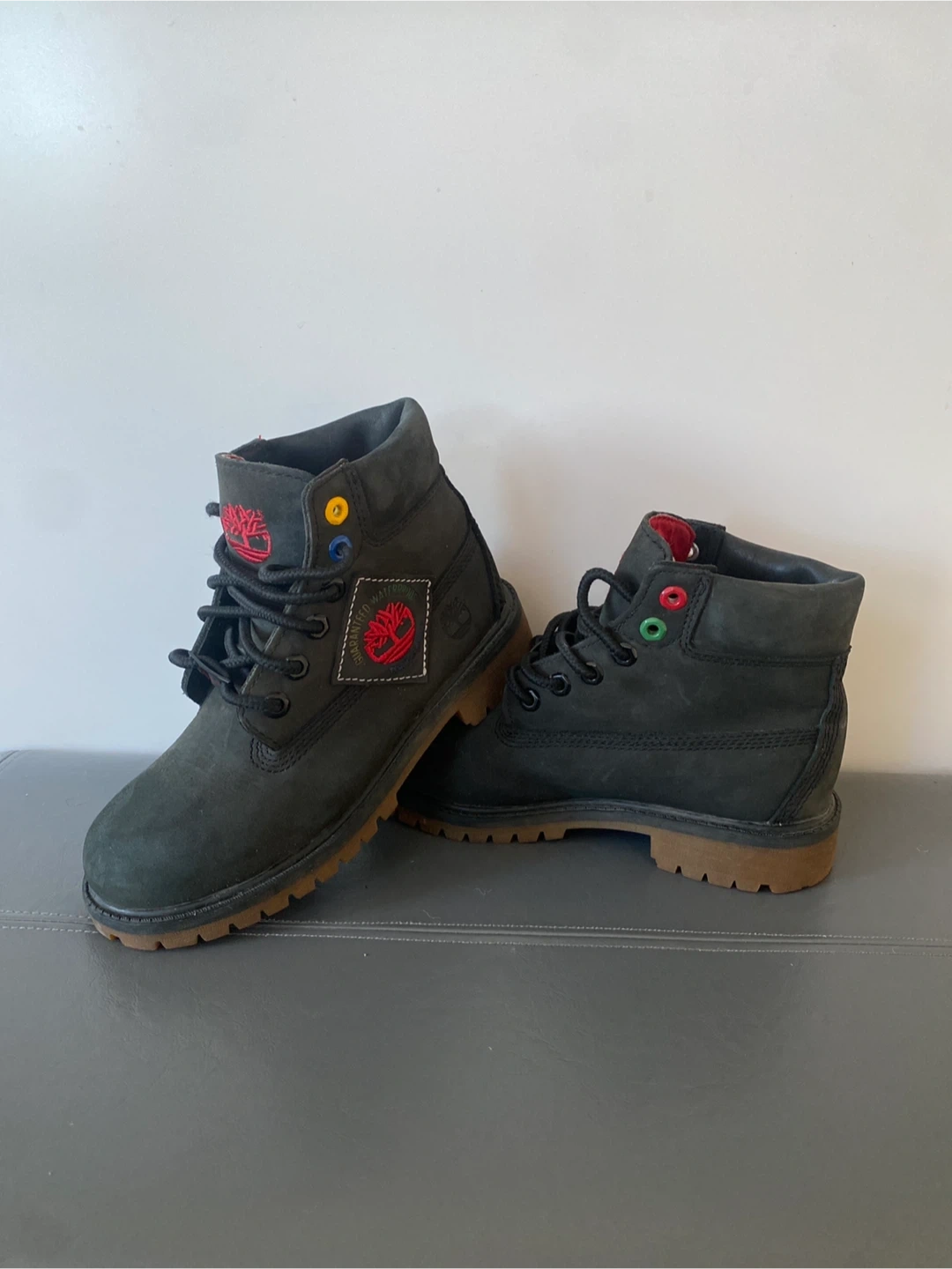 These are a pair of Timberland Waterproof Boys boots in size 1 US. They're in good condition and ready for a new adventure! Perfect for keeping little feet dry and stylish.