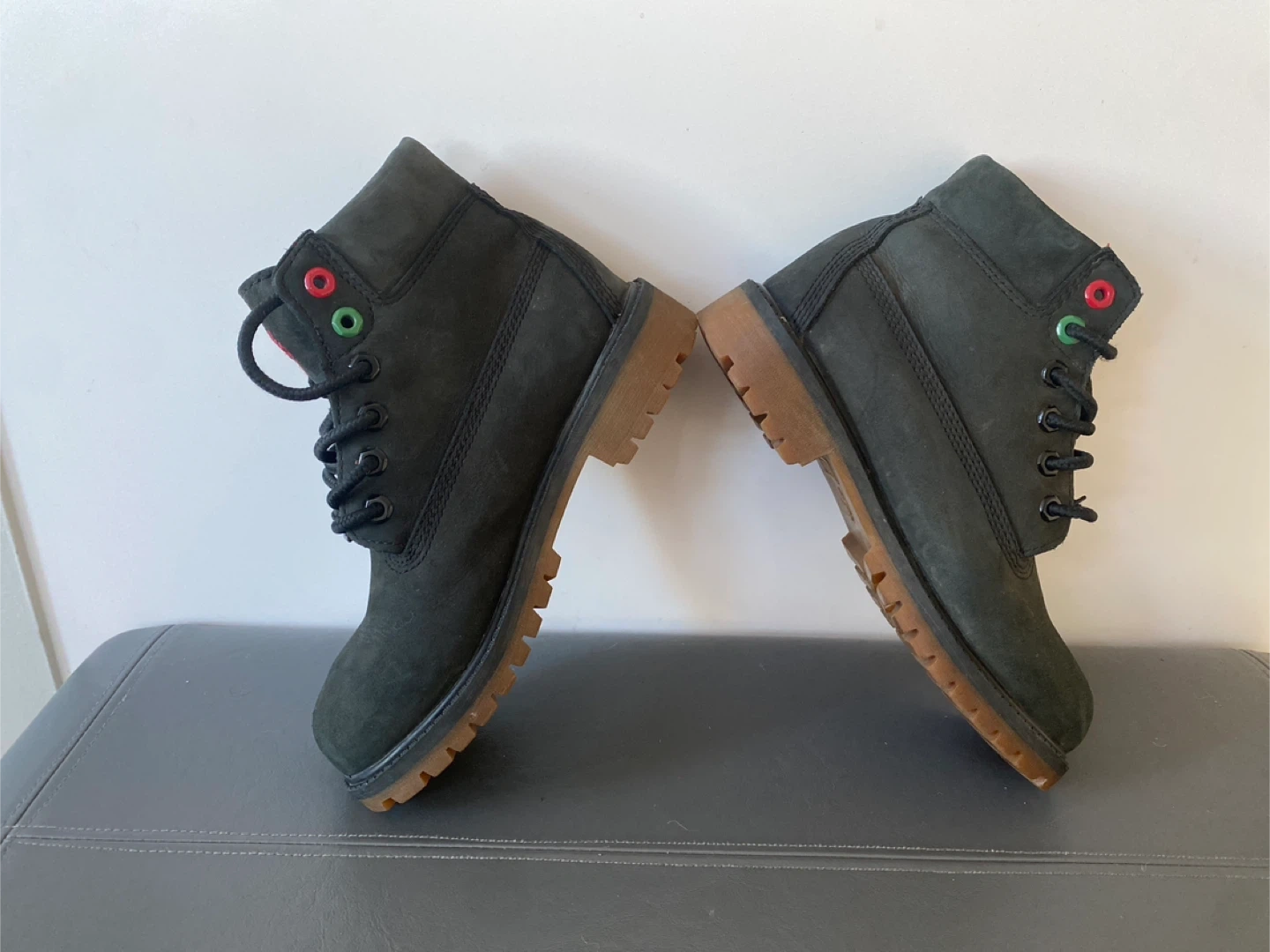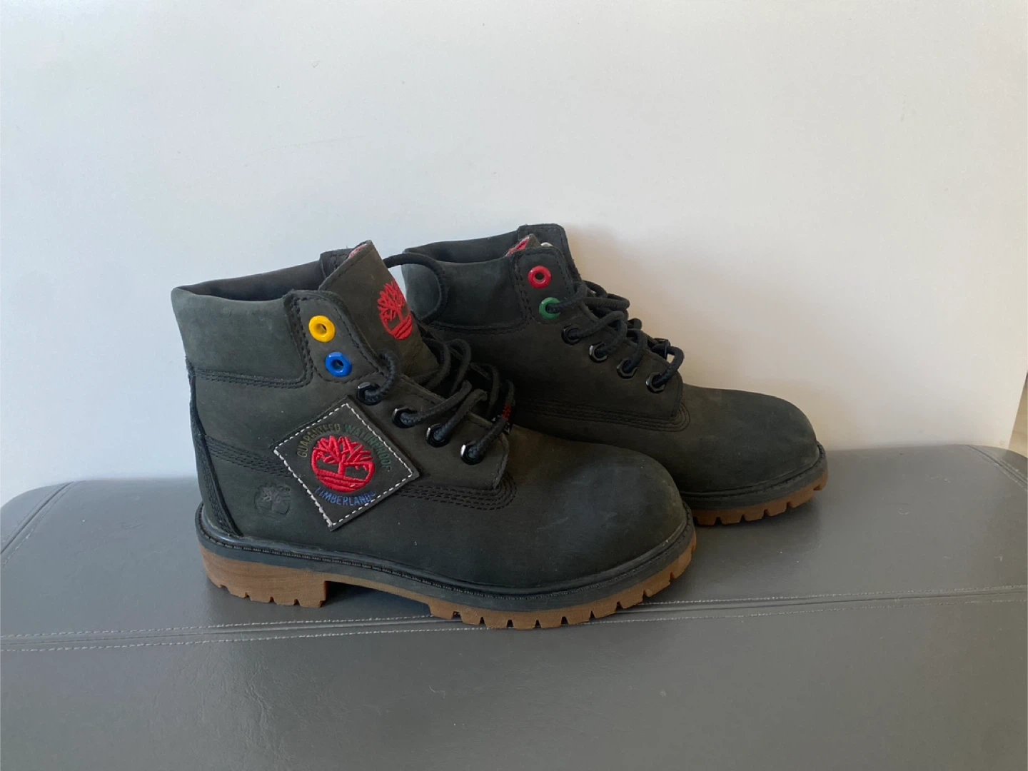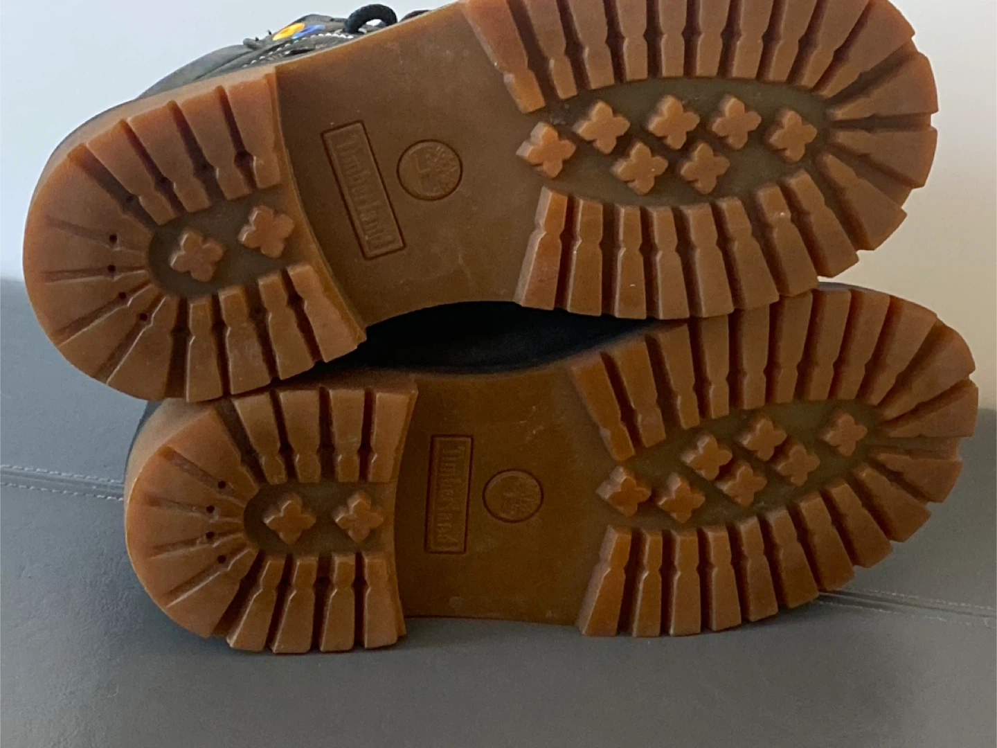 These are a pair of Timberland Waterproof Boys boots in size 1 US. They're in good condition and ready for a new adventure! Perfect for keeping little feet dry and stylish.