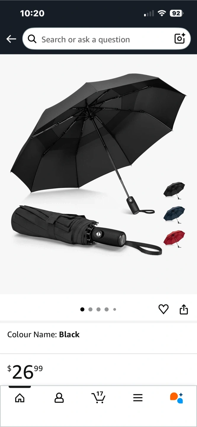 Selling a NINEMAX compact travel umbrella in black! It's windproof and waterproof, perfect for our Canadian weather. This umbrella is strong, folding, and has a small automatic umbrella double canopy. It's also designed to be resistant to wind!