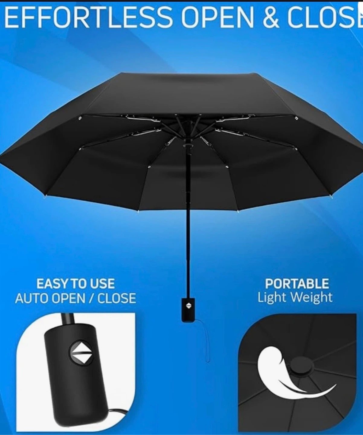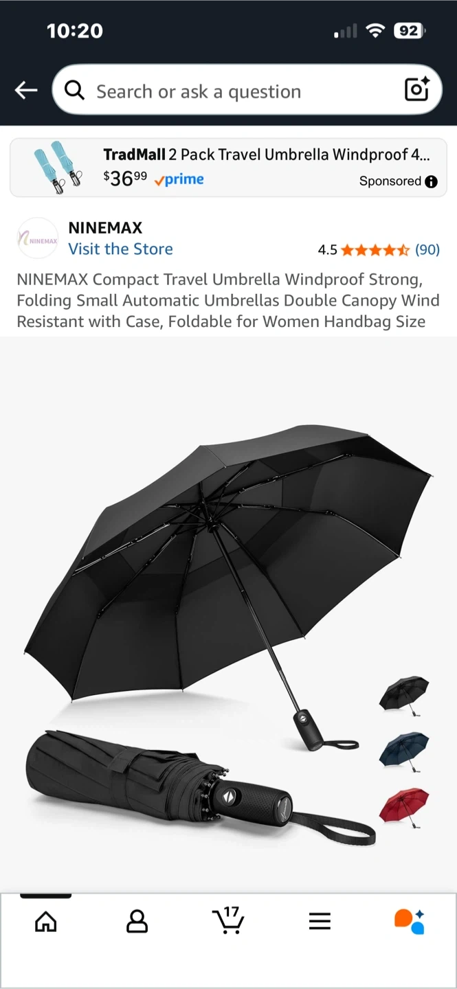 Selling a NINEMAX compact travel umbrella in black! It's windproof and waterproof, perfect for our Canadian weather. This umbrella is strong, folding, and has a small automatic umbrella double canopy. It's also designed to be resistant to wind!