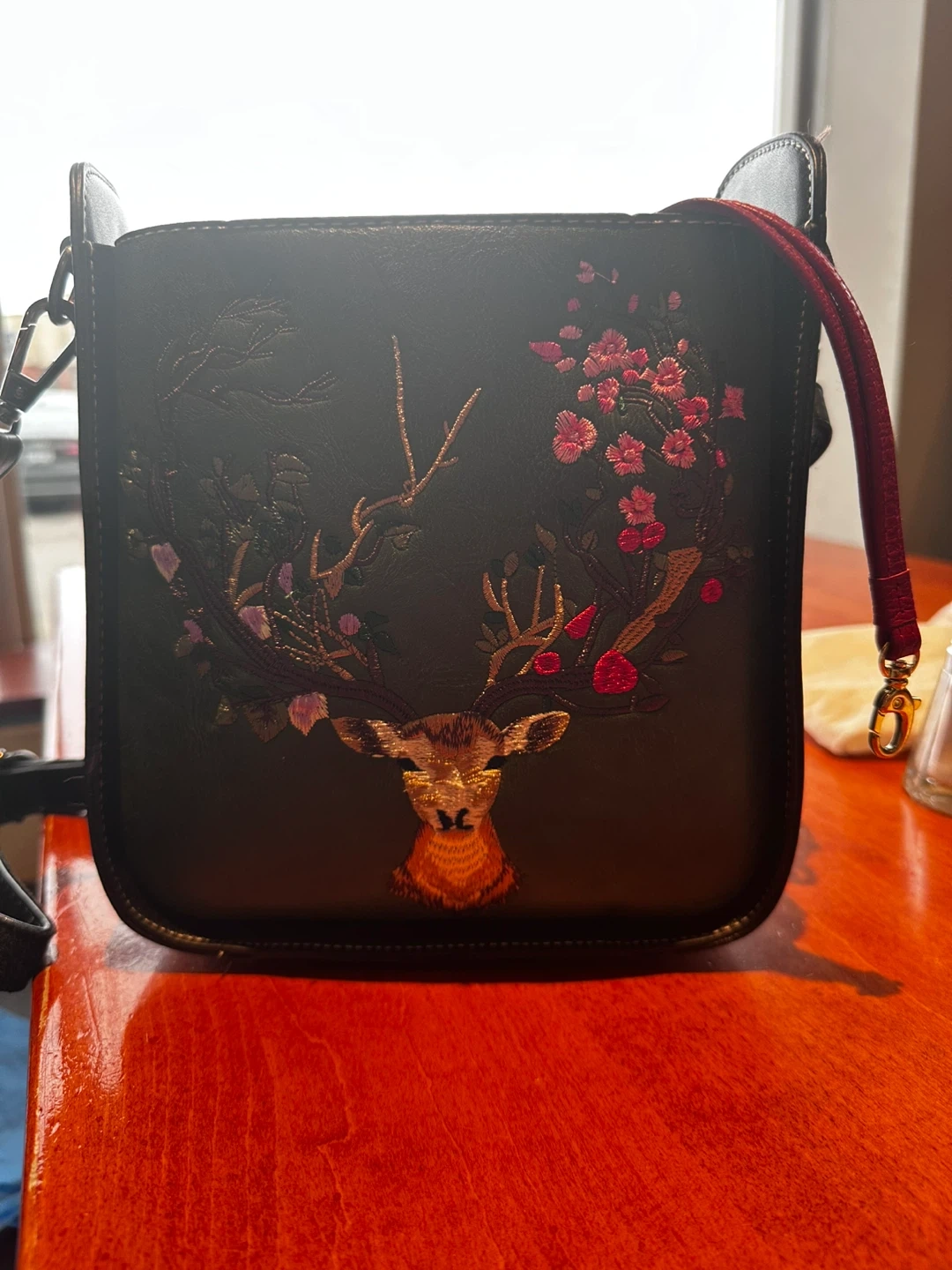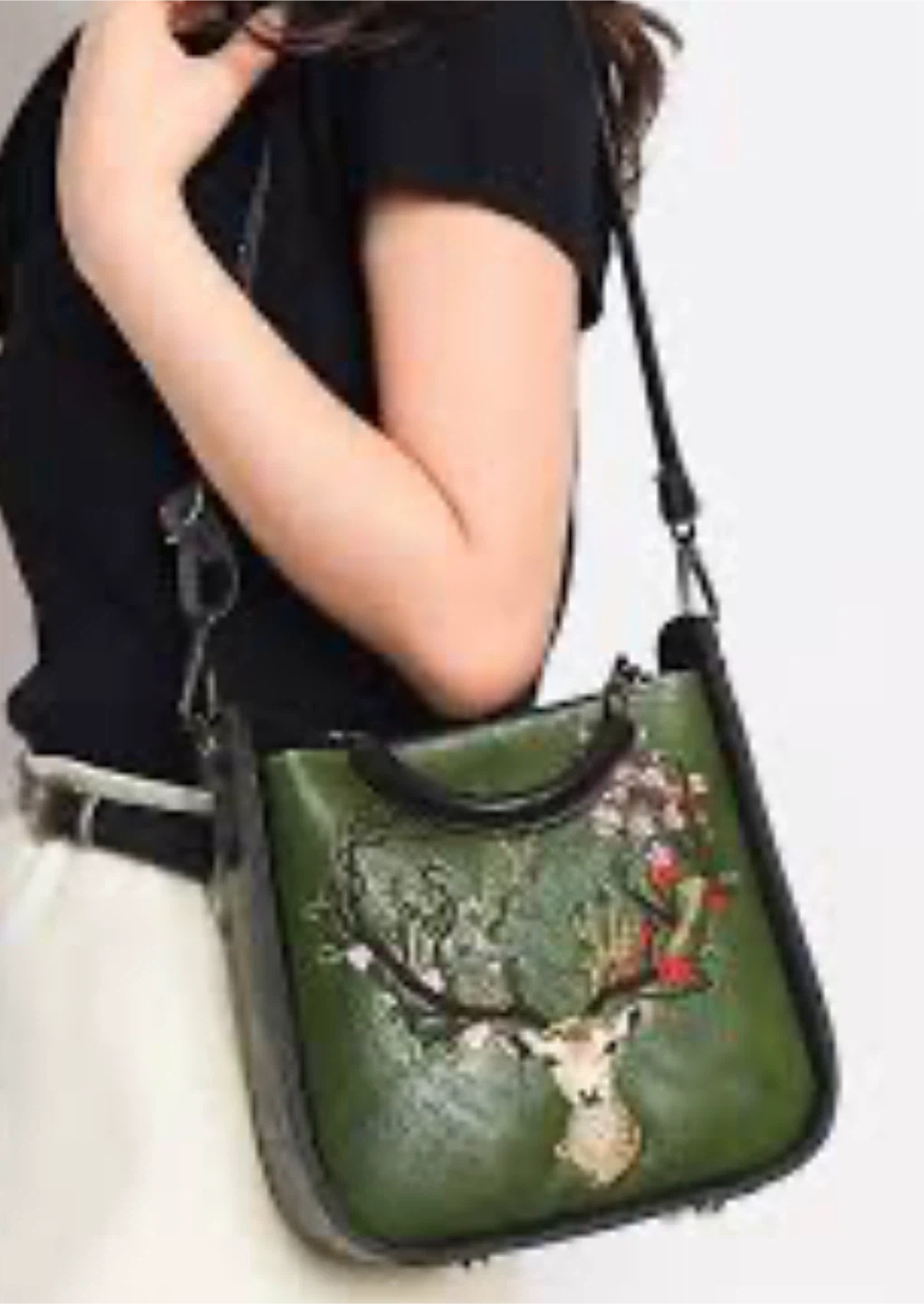 New Stylish vegan leather crossbody bag featuring a unique deer embossed design! The bag is green and black.