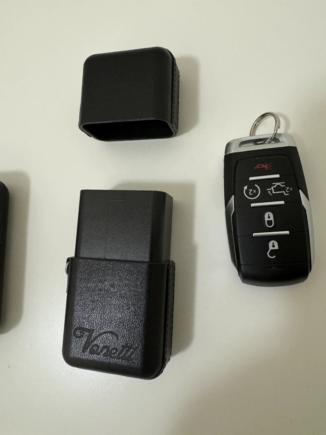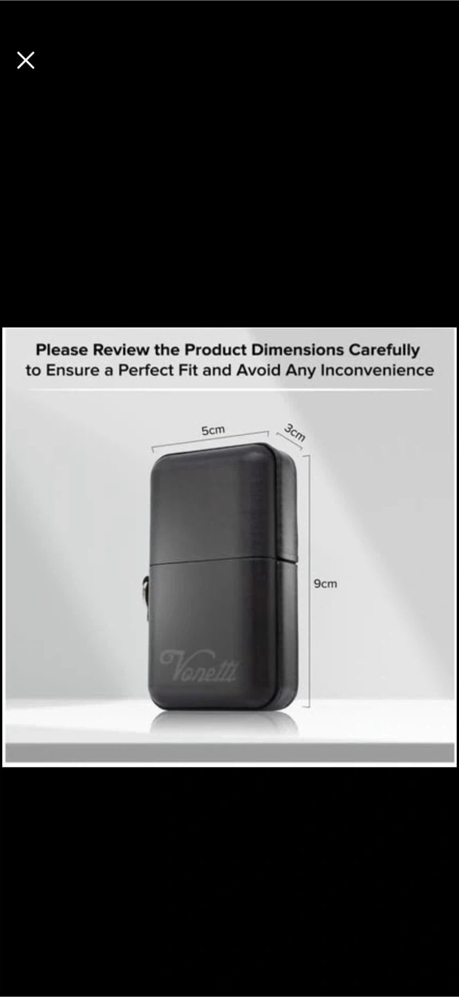 Selling a Vonetti Premium RFID car key protector case in solid aluminum with black leather. It's fingerprint resistant and made of solid 2mm aluminum. The case is designed in Germany and padded with fine leather imitation. Dimensions are 9cm x 5cm x 3cm