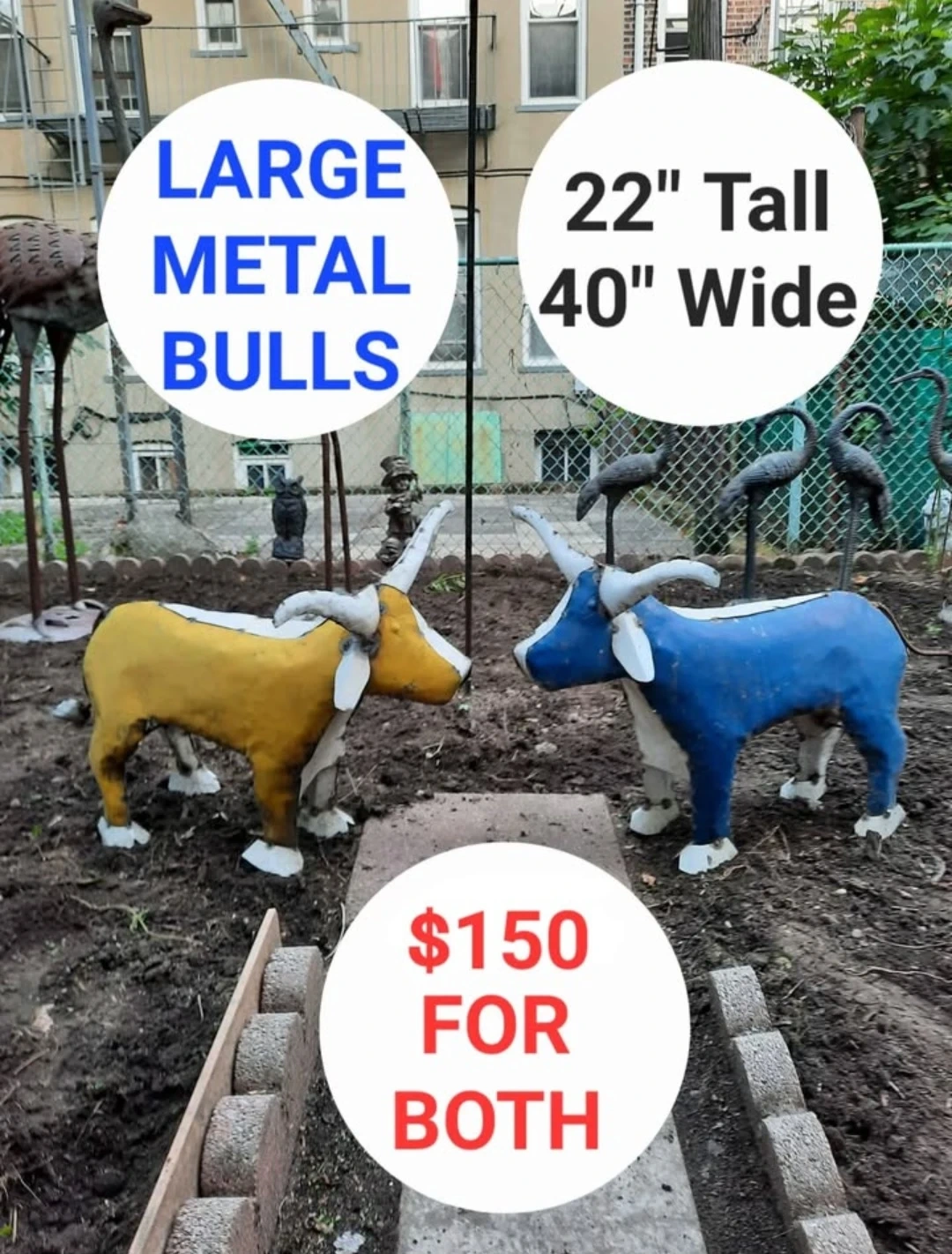 Buy & Sell🥕 Pair of Large Metal Bulls 🥕🥕 Pair of Large Metal Bulls 🥕$150🥕Pair of Large Metal Bulls $150 for Both. Can be Spray Painted To Look Brand New 🥕WHERE TO MEET11103View MapSELLERTINAAstoria16412 reviews0 chats·0 favorites·5 viewsSEND CHAT TO SELLERHi TINA! I’m interested in your listing.Hi TINA! I’m interested in your listing.Get the Karrot app to chatSign In to chat