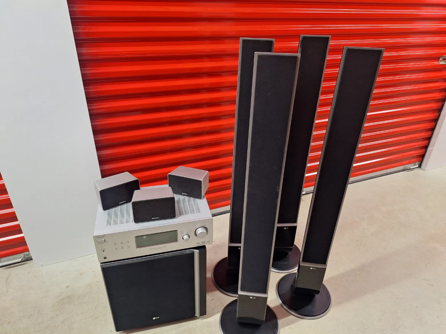 Selling a set of LG speakers along with a Sony Digital Audio Control Center. Great for setting up a home theatre system! Includes tower speakers, smaller speakers, and a subwoofer and cables to connect everything together.
