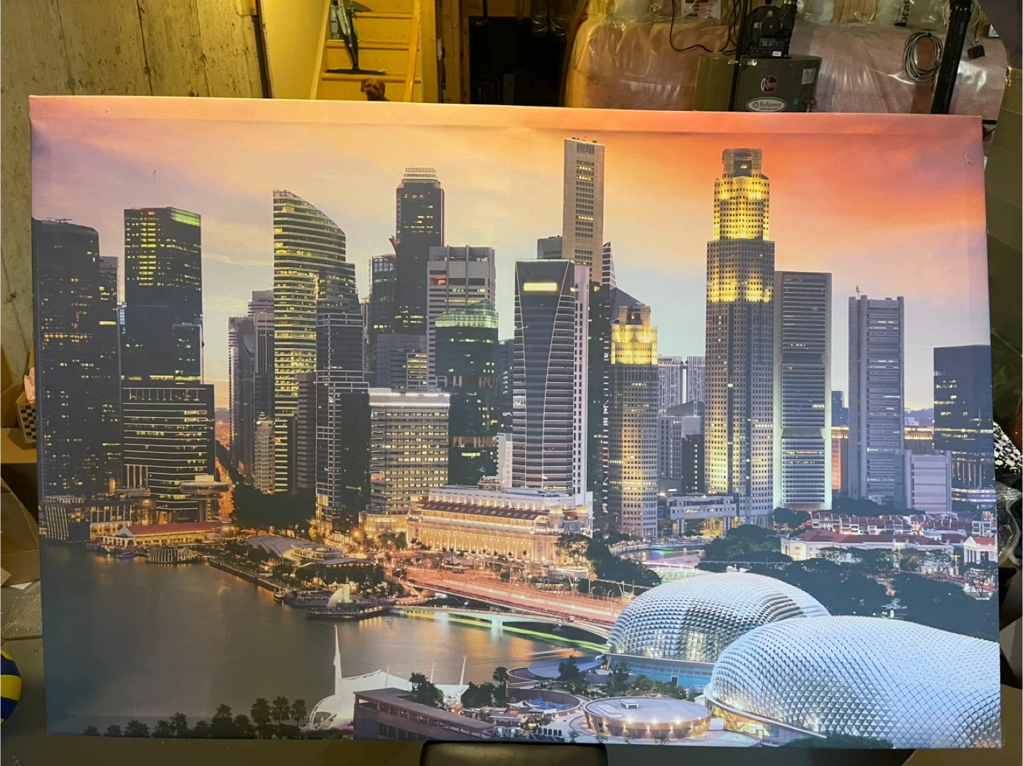 Selling a beautiful cityscape canvas wall art. It measures approximately 40 inches by 60 inches. It's a great piece to add some urban flair to your home!
