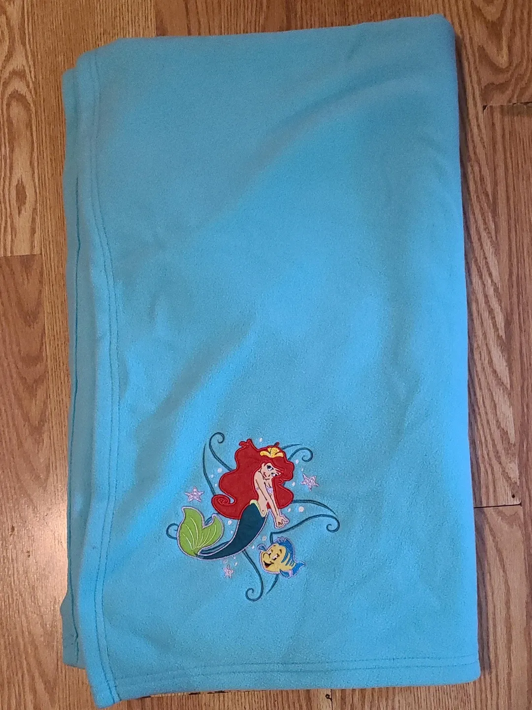 Snuggle up with this adorable Little Mermaid fleece blanket! It's a lovely light blue colour and features Ariel and Flounder. Perfect for any Disney fan!