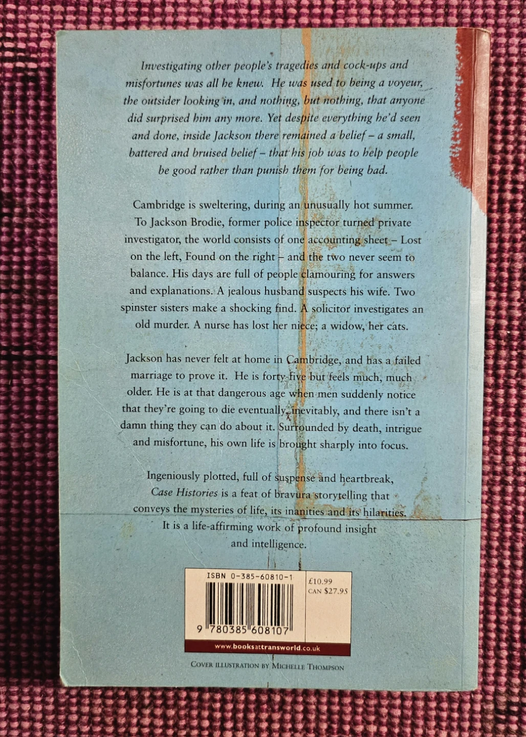 Selling a copy of Case Histories by Kate Atkinson! It's a novel that's full of suspense and heartbreak. The back cover says it's a feat of bravura storytelling, conveying the mysteries of life, its inanities and its hilarities! Originally priced at $27.95 CAN