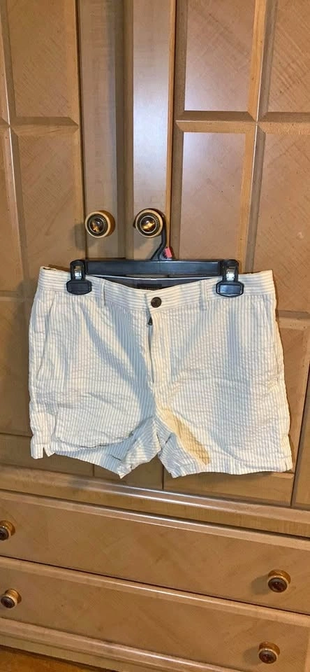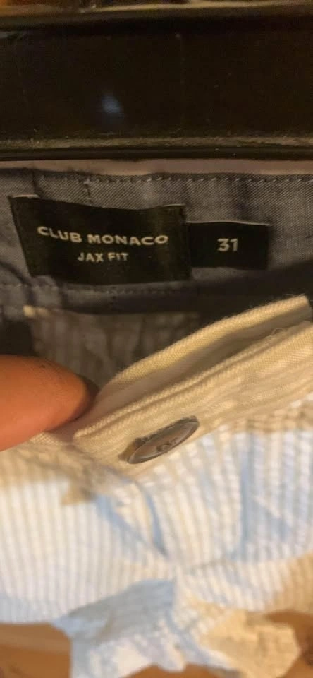 For sale: Club Monaco shorts in excellent condition! These stylish shorts have only been worn once and have been professionally dry cleaned. The waist size is 31, offering a comfortable fit.