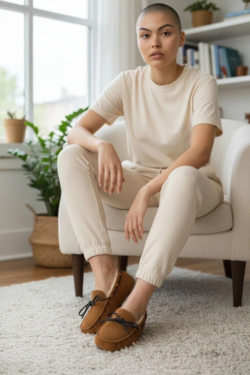 Cozy UGG Ansley moccasin slippers, perfect for indoor comfort! These slippers feature a suede upper and a plush lining to keep your feet warm. The rubber outsole provides traction for light outdoor wear. Comes with the original box!