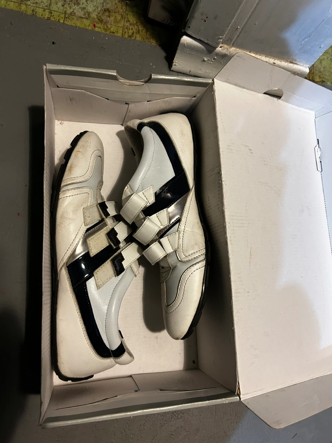 🥕Velcro shoes in white upper with black accents and velcro straps for easy closure. Men Size 9.5-10