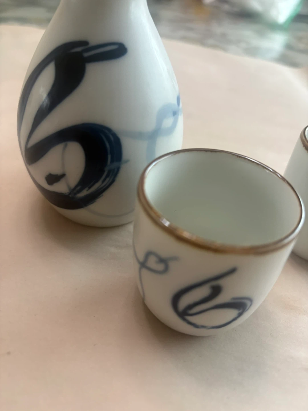 This is a beautiful sake set, perfect for enjoying your favourite sake. It was made in Japan and features a lovely design. It includes a sake bottle and two cups