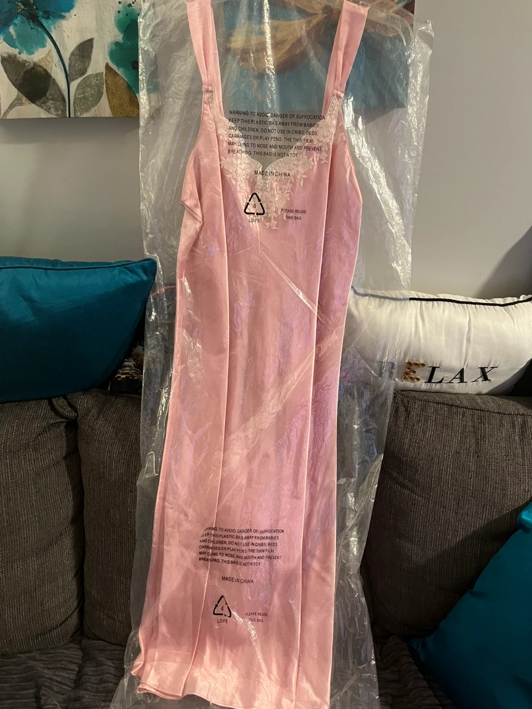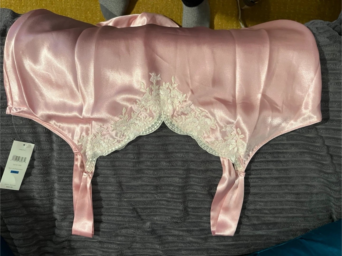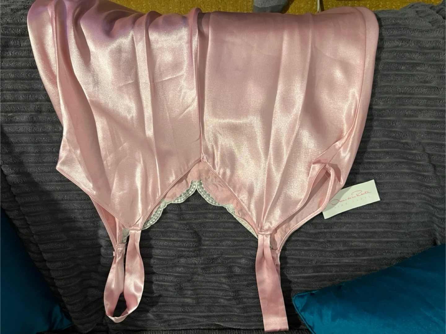Here's a brand new Oscar de la Renta nightgown in size XL! It's a beautiful pink colour with lace detailing, called Lace Enchantment. Perfect for a cozy night's sleep or a special occasion