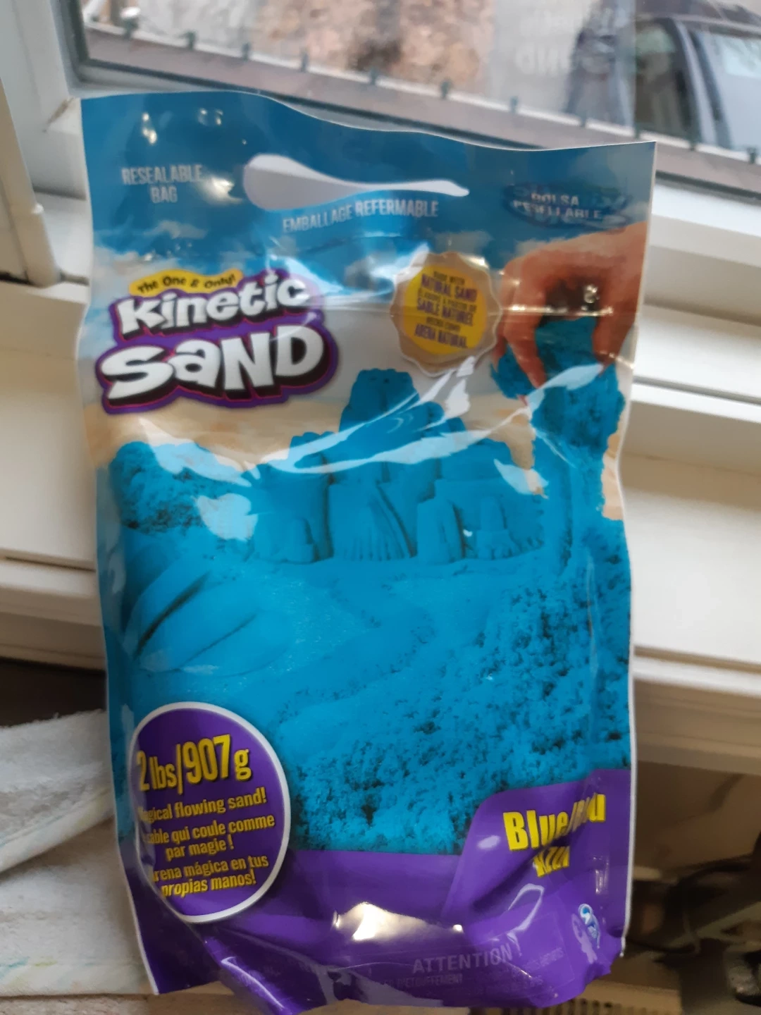 I'm selling a brand new 2lb/907g bag of blue Kinetic Sand! It's magical flowing sand that never dries out. Perfect for creative play and sensory exploration