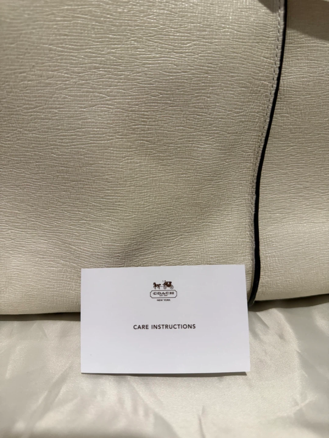 Selling a lovely Coach handbag in ivory leather. It's in great condition and comes with its original dust bag! The bag features silver-tone hardware and a structured design, perfect for everyday use or special occasions. Feel free to reach out if you have any questions!